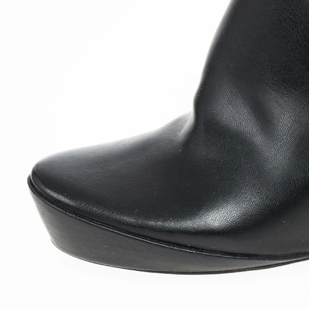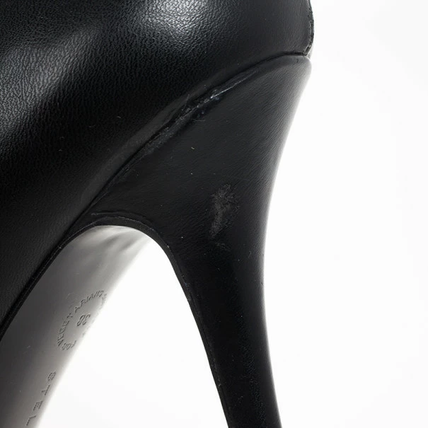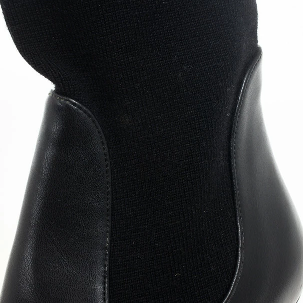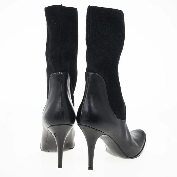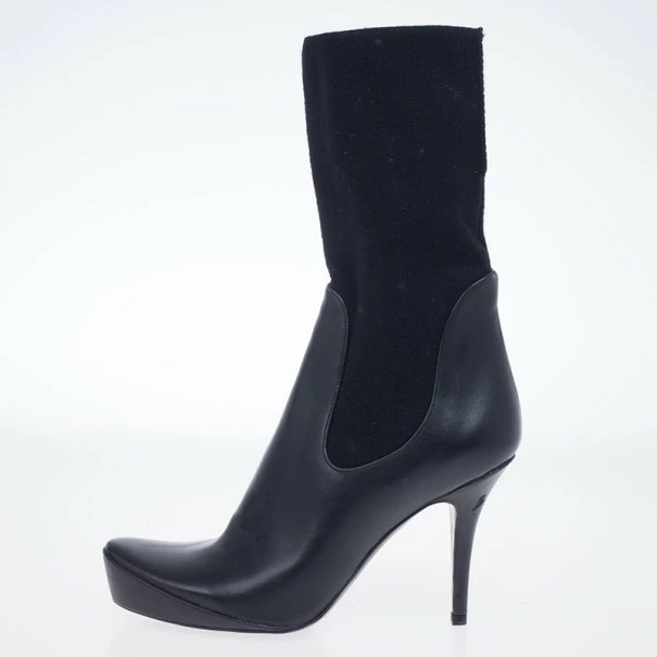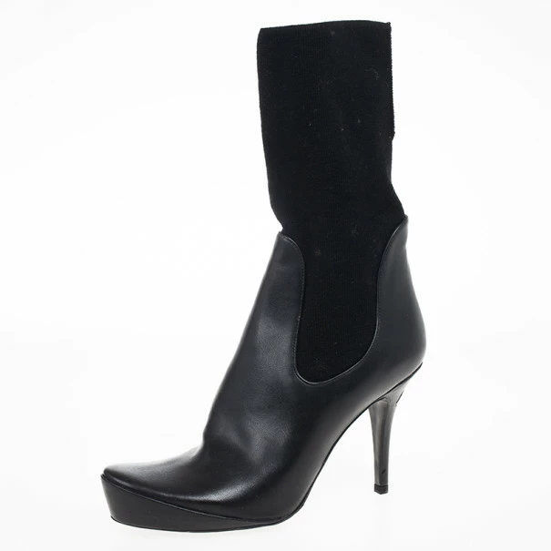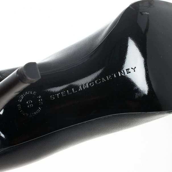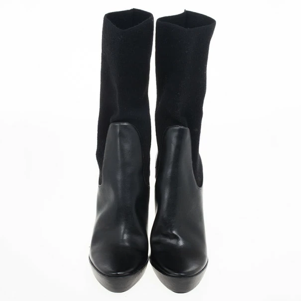 these Stella McCartney Black Leather Sock Platform Ankle Boots will add an edgy finish to your outfit. These patent leather and fabric platform boots feature pointed toes and 10 CM heels. Wear these sock boots with a skirt or a dress and glam up your look in no time!