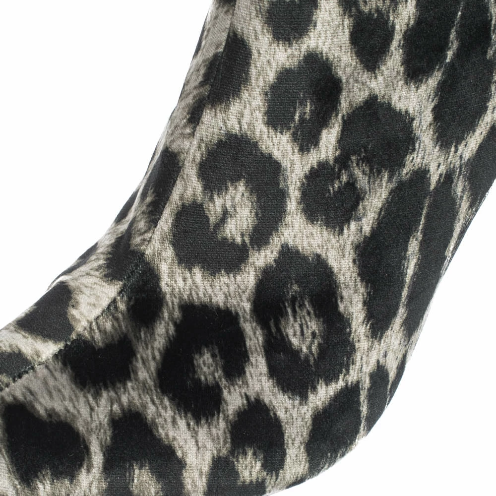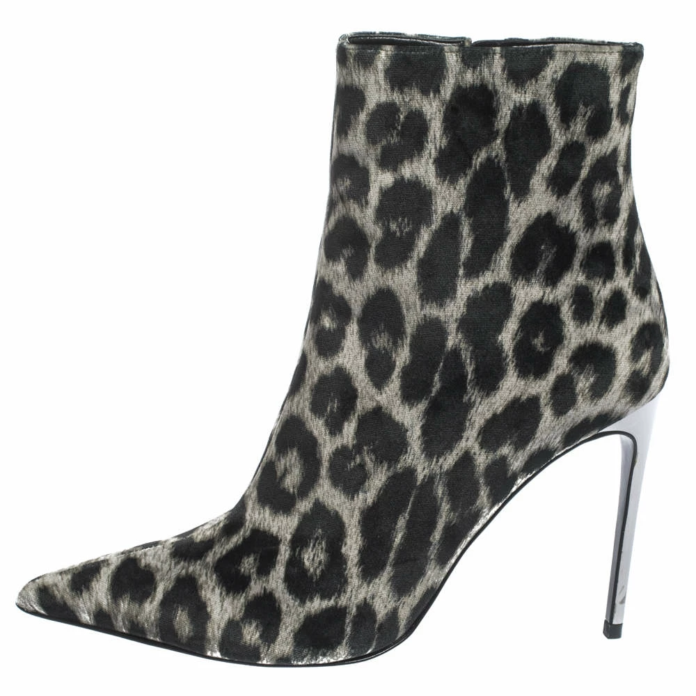 These striking ankle booties hail from the cool and stylish house of iconic designer Stella McCartney. Crafted meticulously from luxe velvet, they carry a black leopard print that is very flattering. They are styled with pointed toes, zip closures, 10 cm high heels and black-tone hardware.