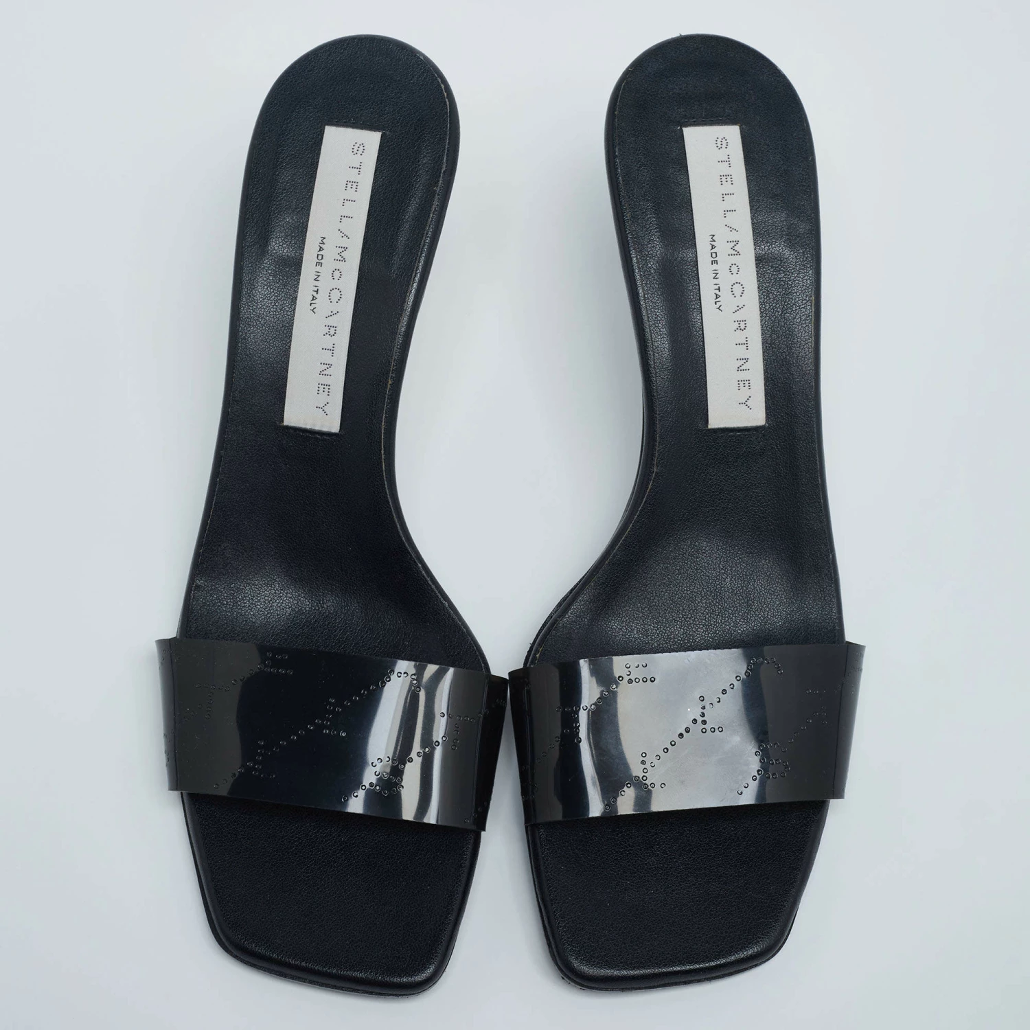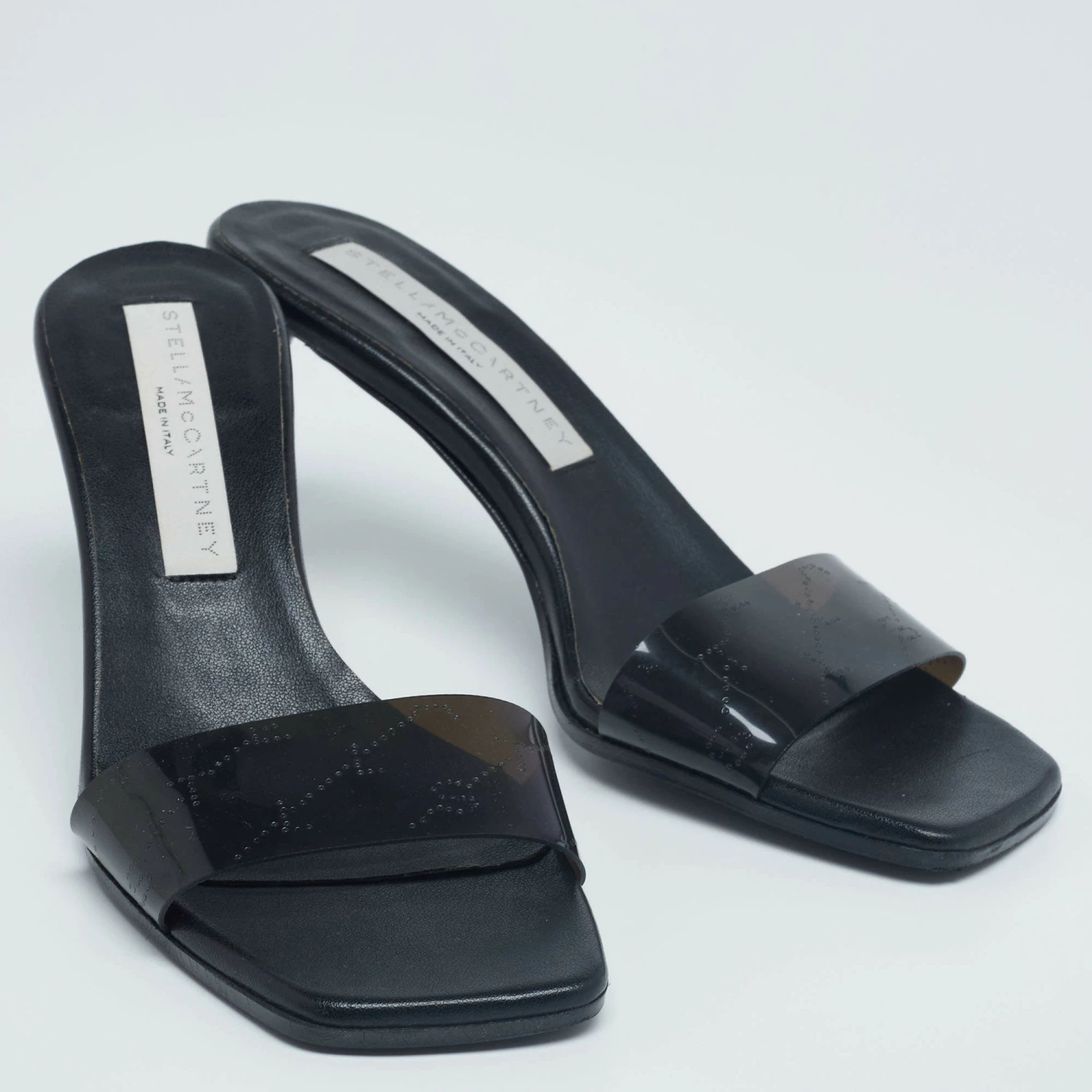 The PVC wide strap adorns the upper of these Stella McCartney sandals. Lined with faux leather, they have been designed into an open-toe silhouette. The 6.5cm heels will class up your regular looks.
