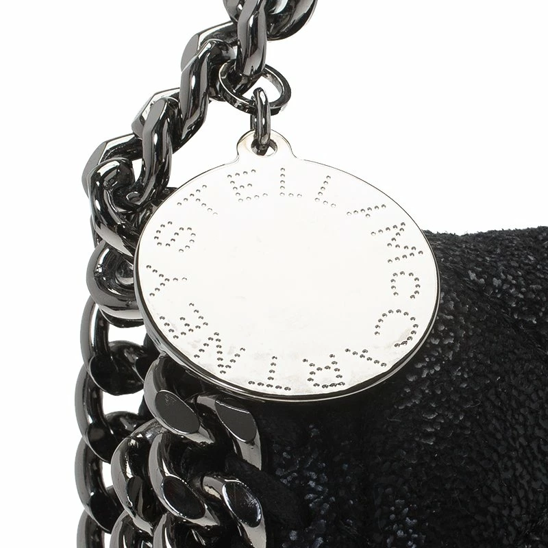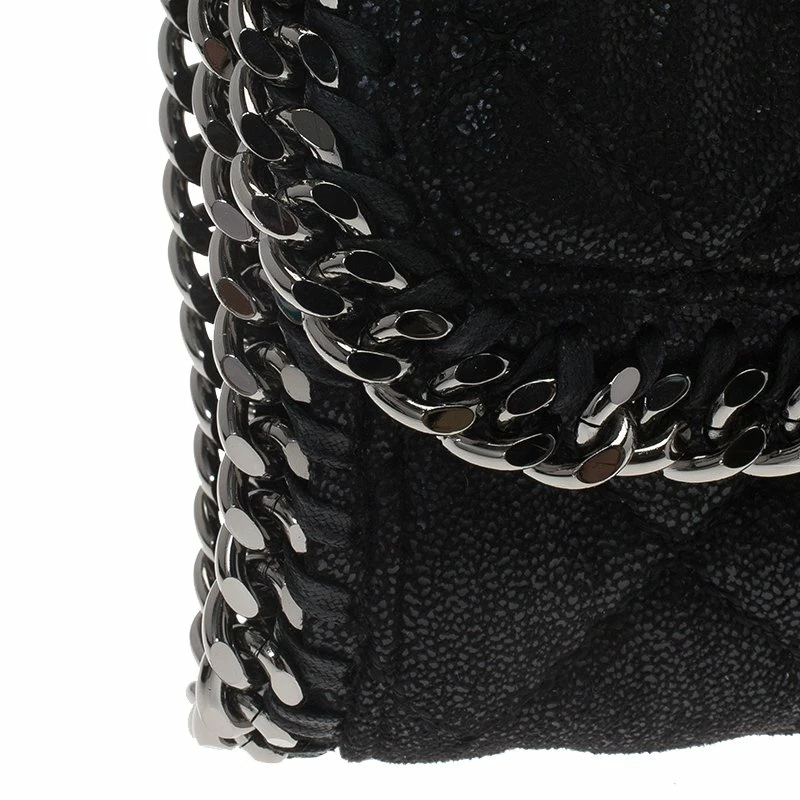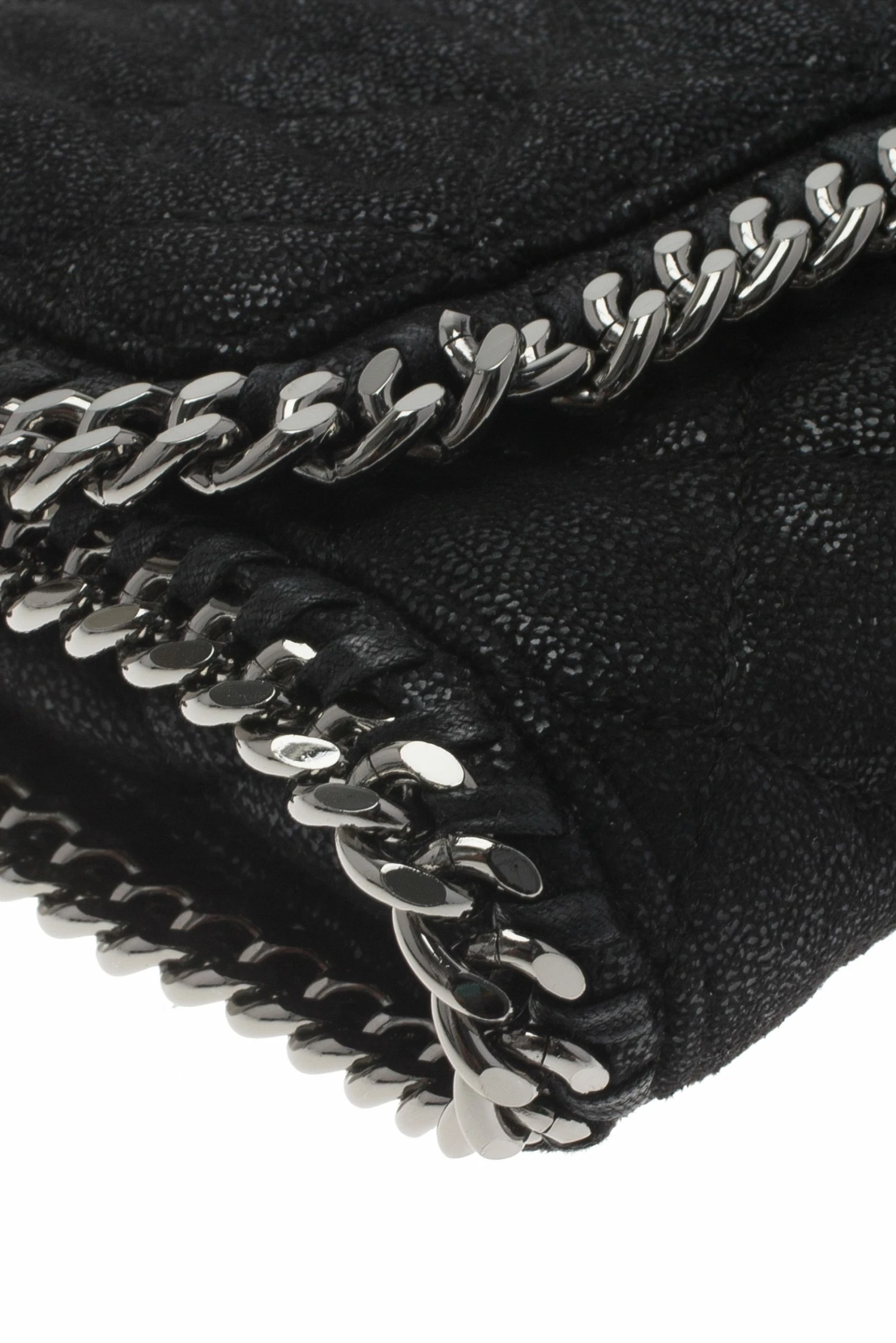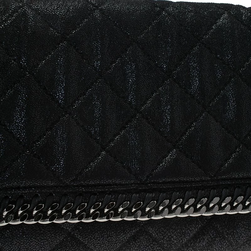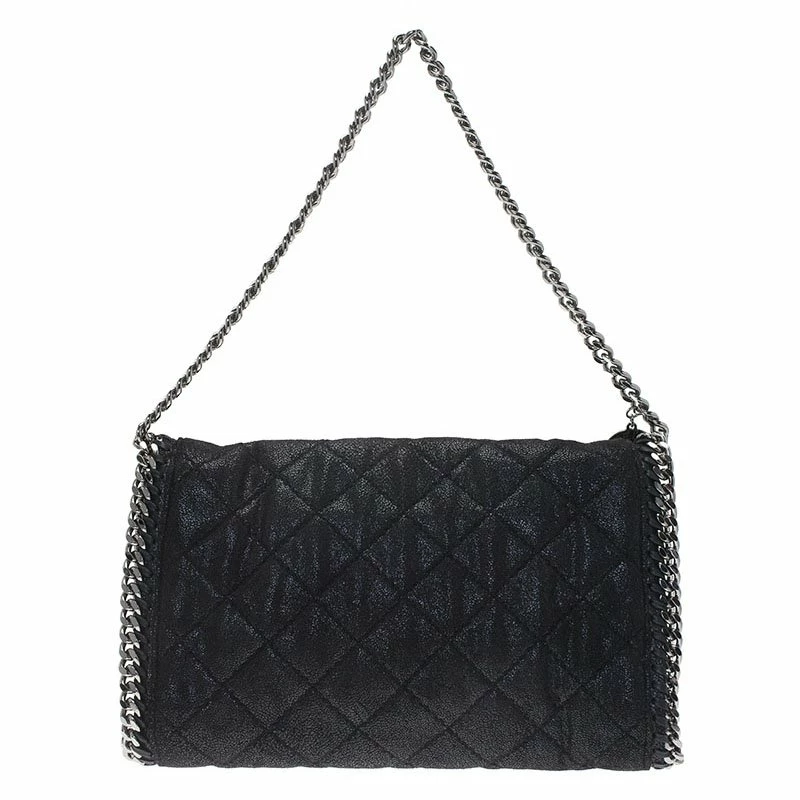 Stella McCartneyโs Falabella collection comprises masterpieces such as this flap bag. It has a quilted faux leather exterior that is designed with a suede feel. It features a stitched trim with chain links. The silver-tone hardware extends to form the shoulder strap. It has a magnetic snap closure that opens to a lined, monogrammed interior with an open pocket and one zip pocket. A Stella McCartney charm completes the look.