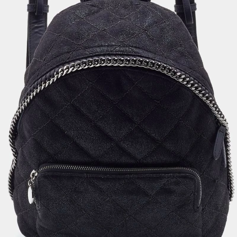 To accompany all your casual outings in the most fashionable way, Stella McCartney brings you this Falabella backpack that is fabulously designed and has outstanding details. It flaunts a black faux leather quilted exterior with a front zip pocket and chain details. It is held by two shoulder straps. You’ll surely love calling this backpack your own!