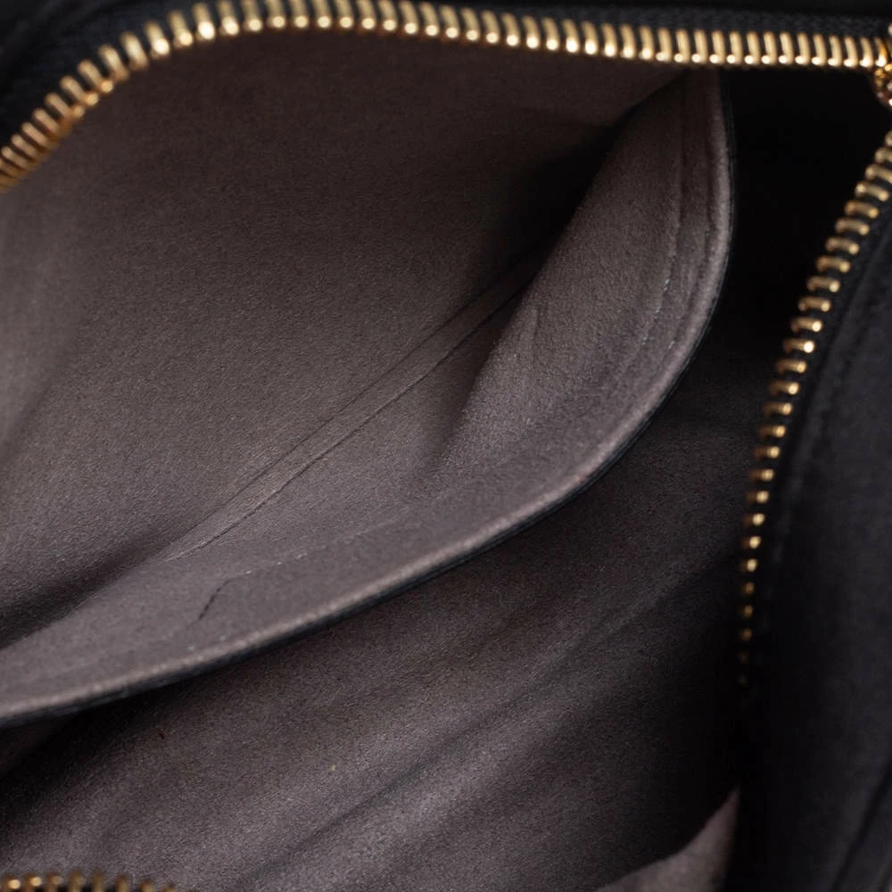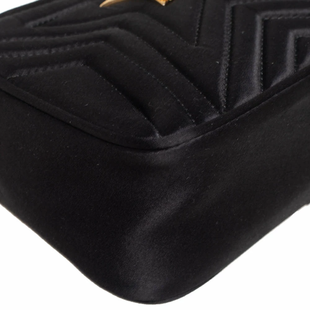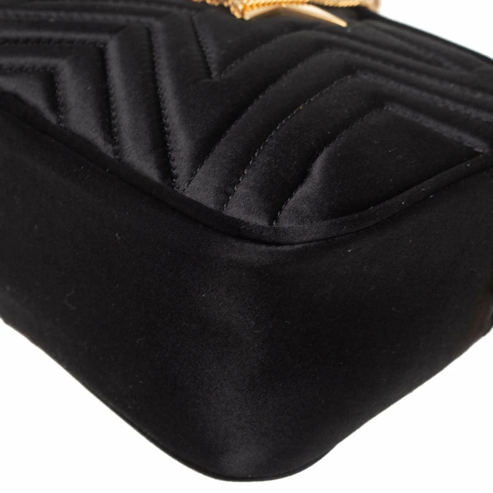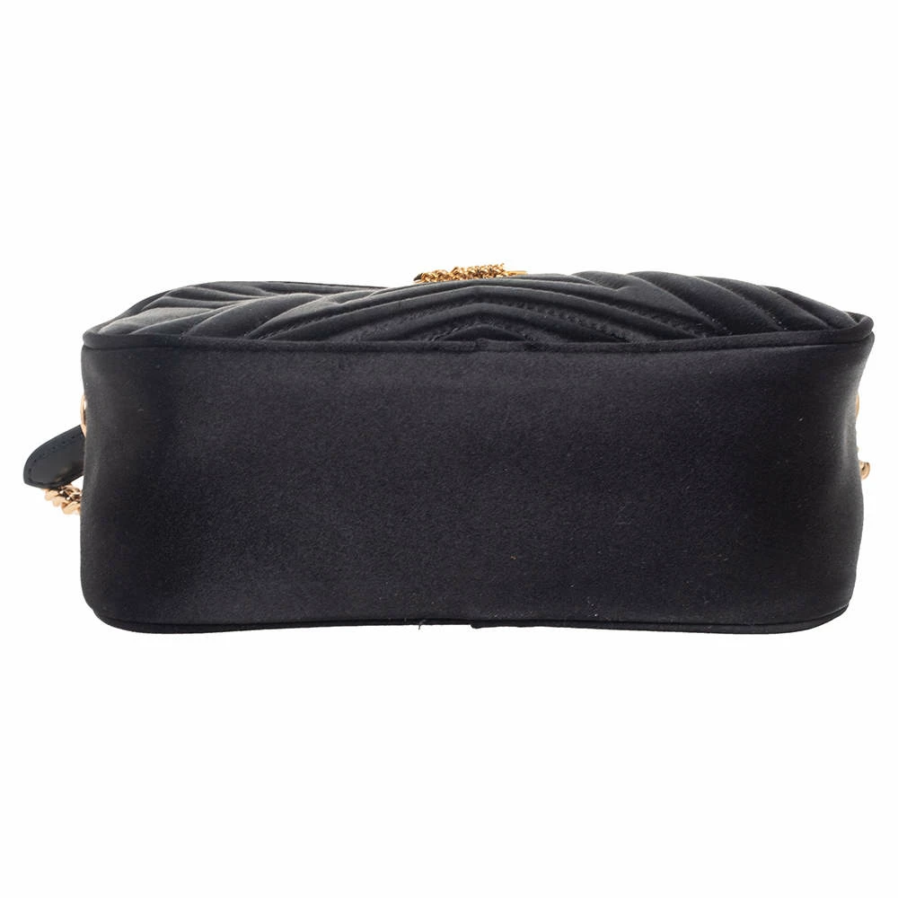 Make a wonderful appearance by adorning this plush bag by Stella McCartney. Crafted from satin, it comes in a lovely shade of black. It features a quilted star pattern and the brand’s logo makes an appearance on a star-shaped emblem on the front flap. The faux suede-lined interior is sized to house your essentials. The bag is complete with a gold-tone chain-link strap.