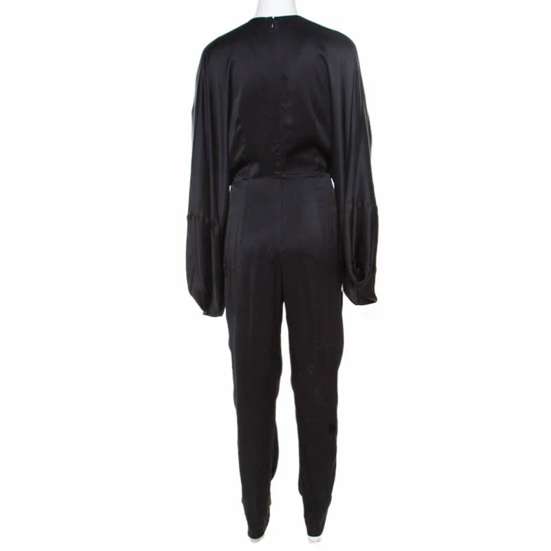 Chic and bold, this jumpsuit tailored from Stella McCartney is carefully designed for the beautiful you. Choose this adorable and classy black piece and look perfect in all your outings. It features a unique silhouette with a plunging neckline and an embellished waistline. Tailored from blended fabric, this outfit has long sleeves and zip fastenings. It will impress everyone around in just one glance.