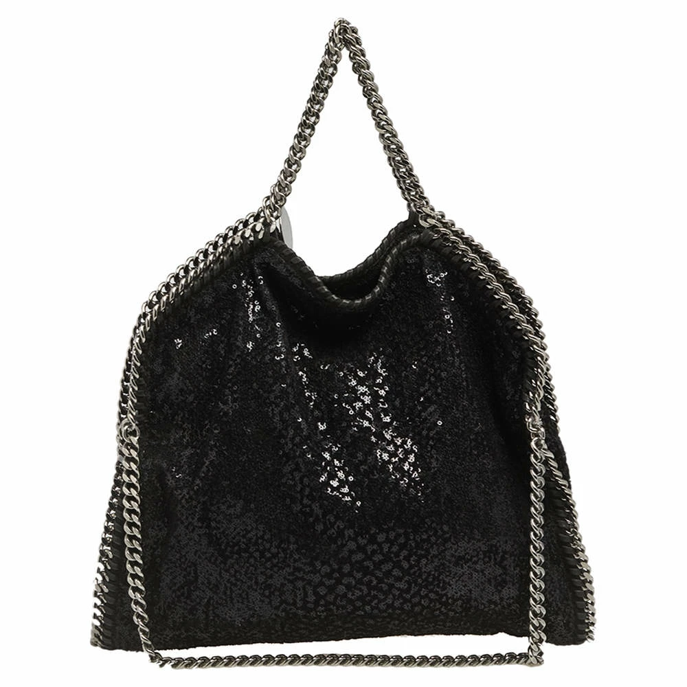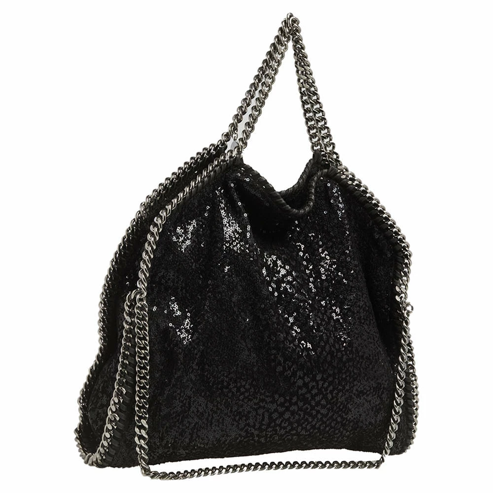 This Falabella tote from Stella McCartney is one of the most loved designs from the sustainably conscious label. This version is designed with black sequins. While the chain detailing elevate its beauty, the fabric-lined interior will dutifully hold all your daily essentials. You can swing this tote using the chain handles.