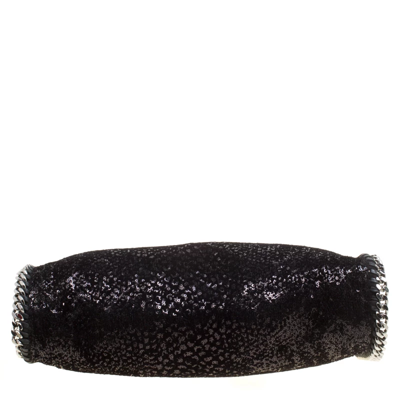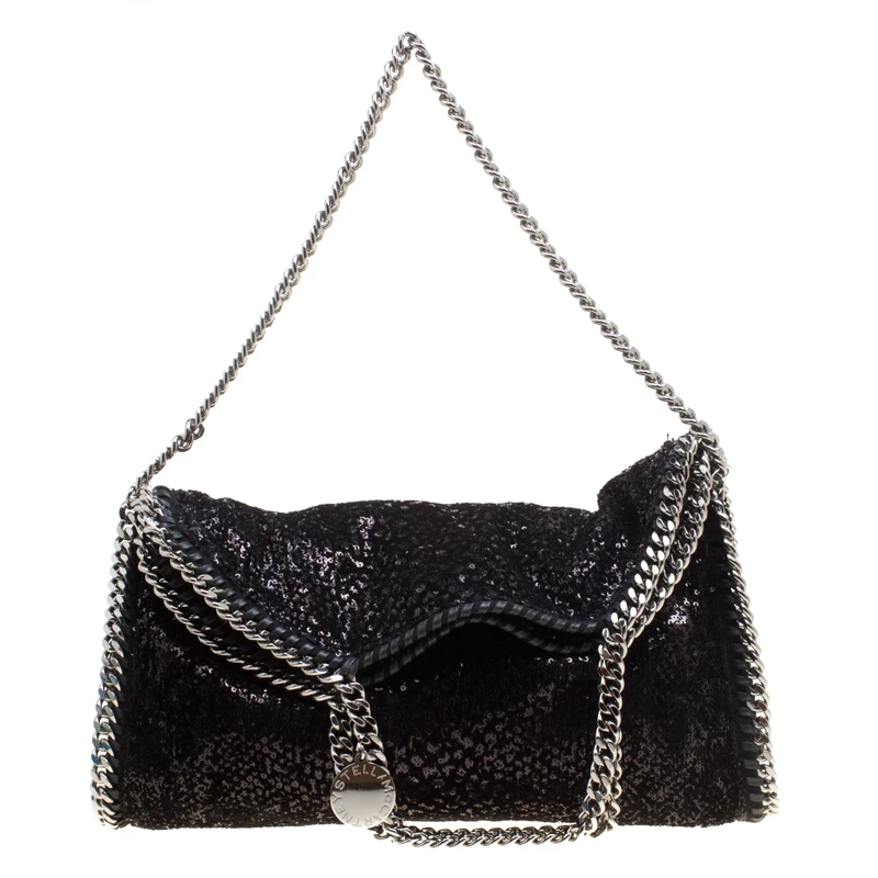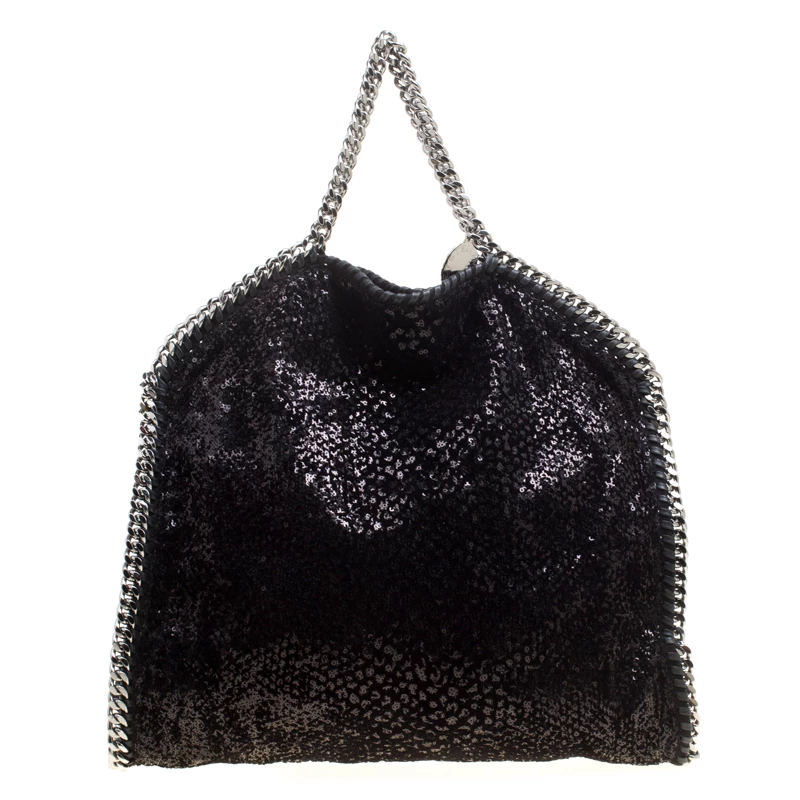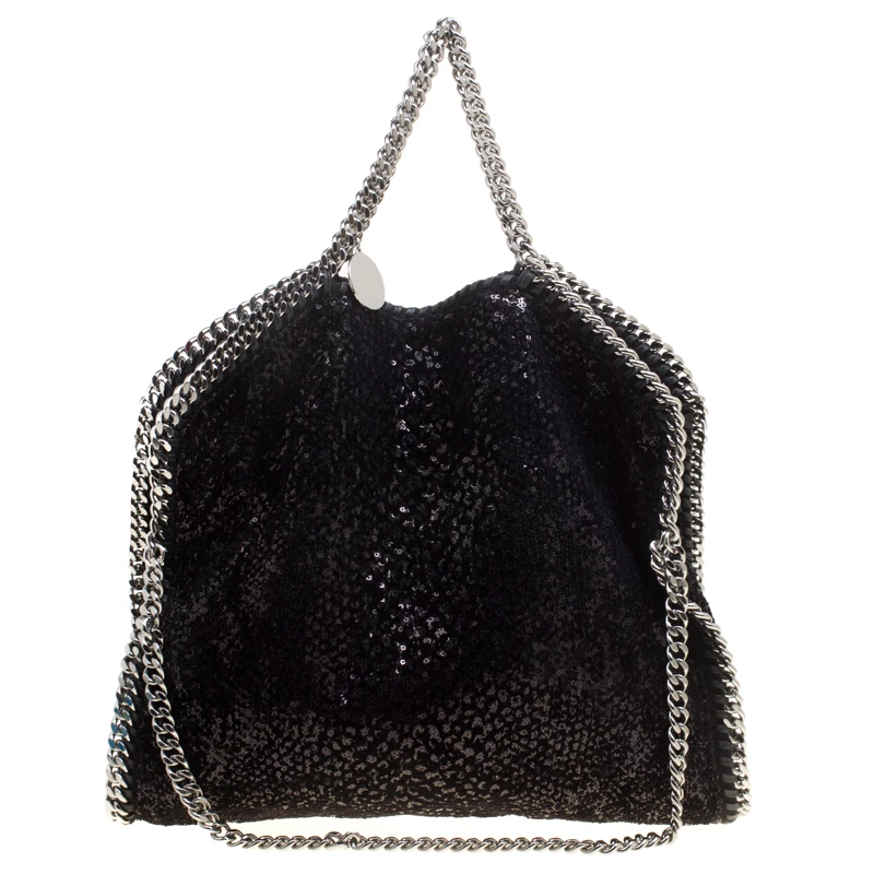 Stella McCartney is known for her chic designs and this Falabella tote perfectly embodies this trait. Crafted in Italy from black sequins and velvet with a fabric interior, this tote has a beautiful glittering exterior and black-tone chain details at its contours and as handles. This bag can be carried with your everyday outfits.