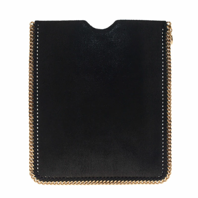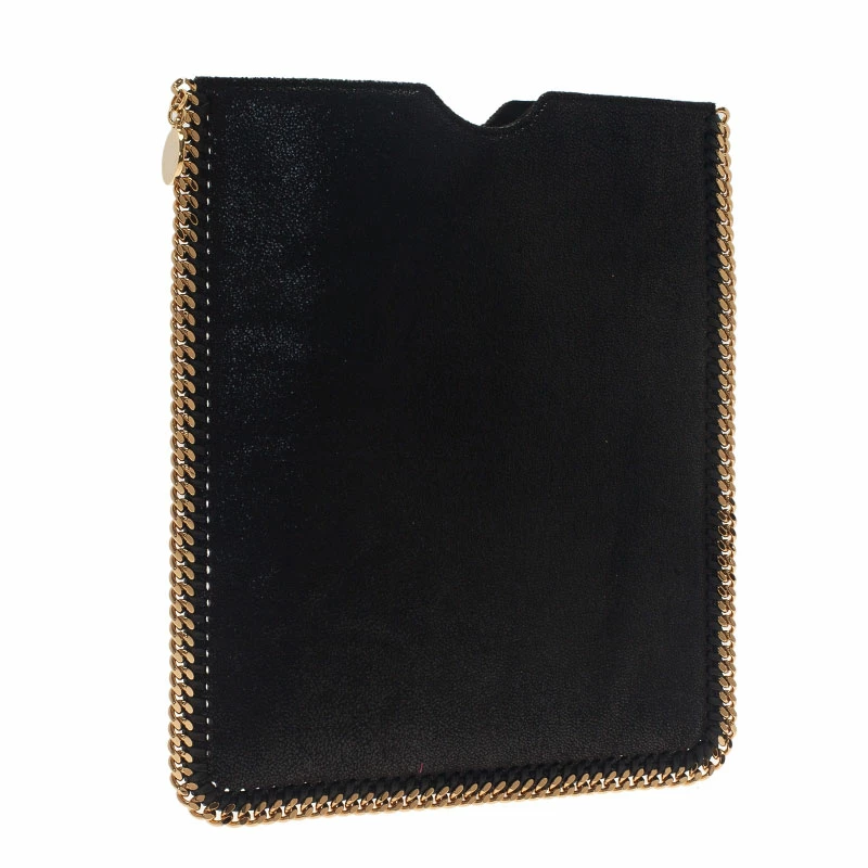 This chic Stella McCartney Black Ipad Cover will protect your ipad in style. It is made from faux black leather and is highlighted with gold-tone hardware ornamentation on the corners. It is accented with a brand detailed charm at the top adding more spark to the product. This Ipad cover comes with suede lined interior for an extra protection of your priced possession.