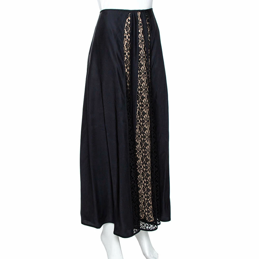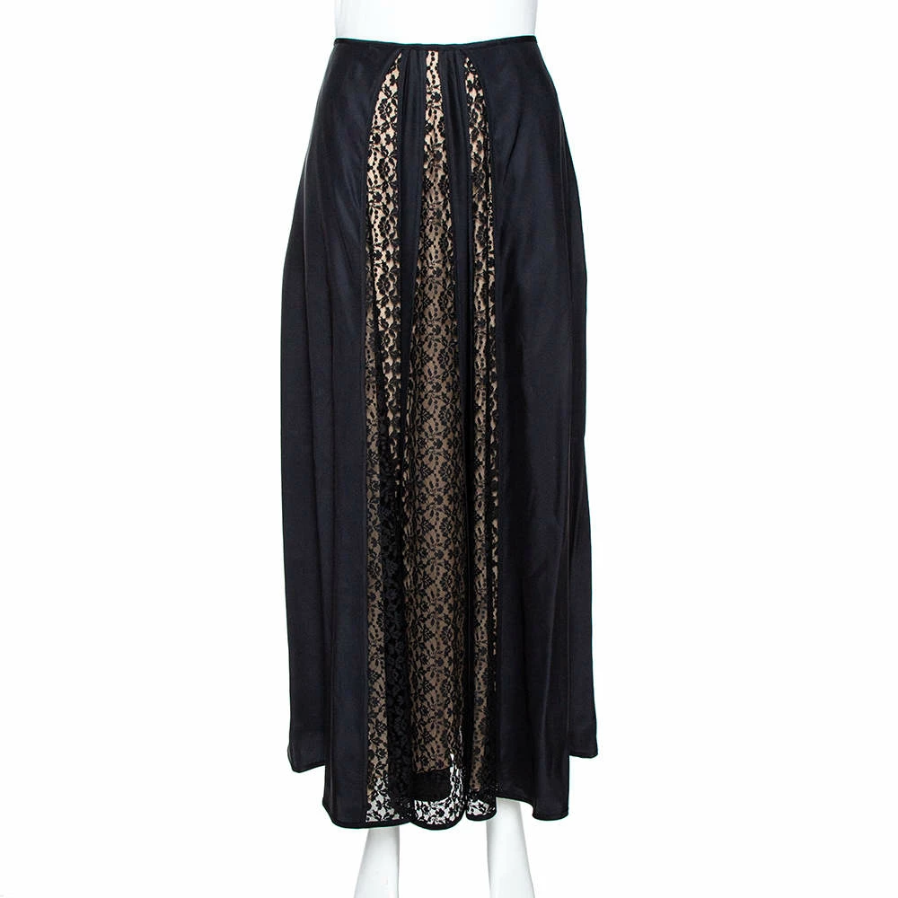 Stella McCartney brings you this wonderful skirt. It comes made into a lovely shape with lace panels that add a nice contrast to the black silk. You can wear it with a plain top or blouse and a pair of elegant sandals.
