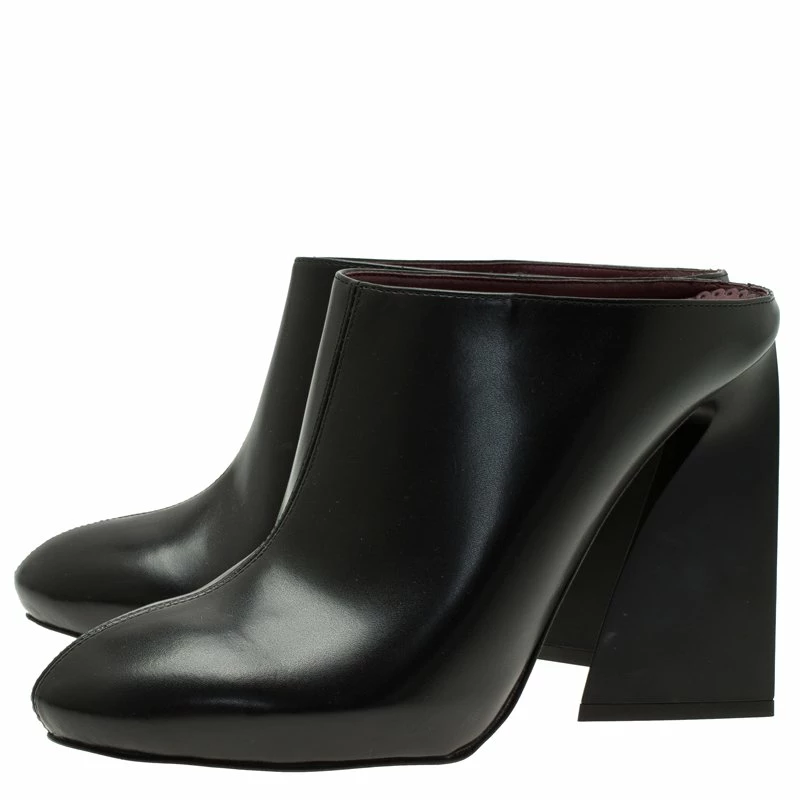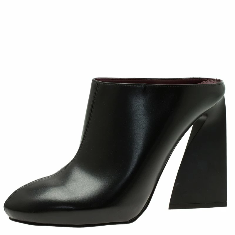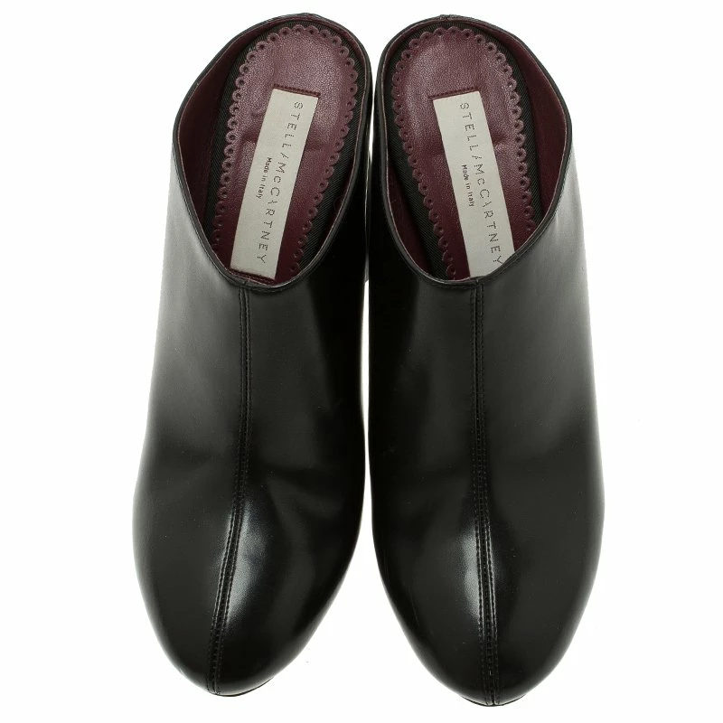 Slip in these exquisite black mules from the house of Stella McCartney. Crafted from luxe leather, they feature no appliquΓ© fronts with center stitching and no counters. Elevated on 11.5 cm contoured heels, they are lined with leather.