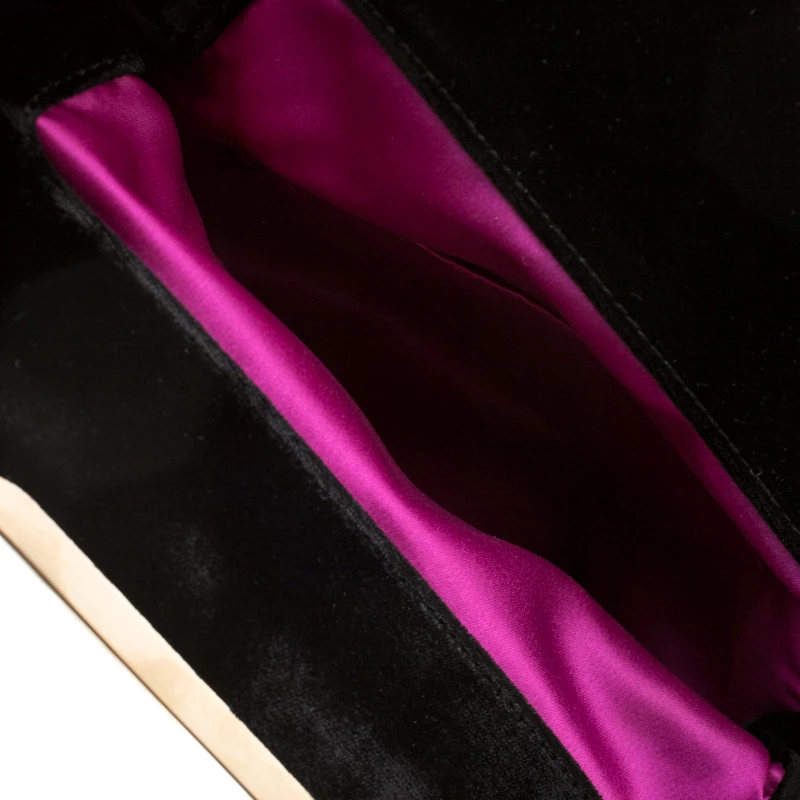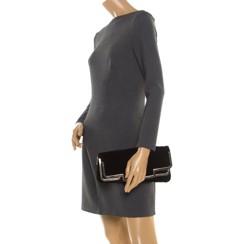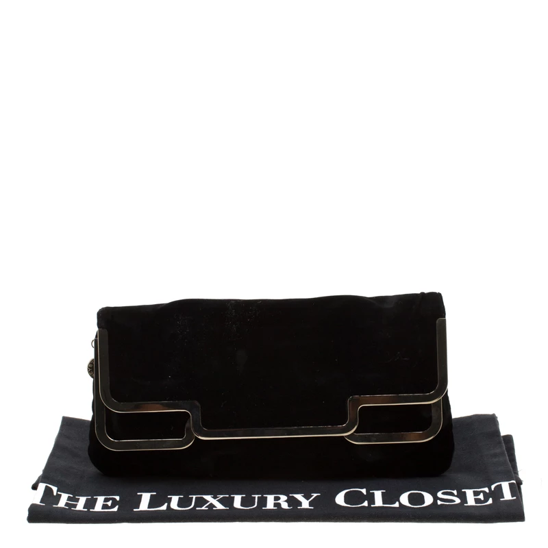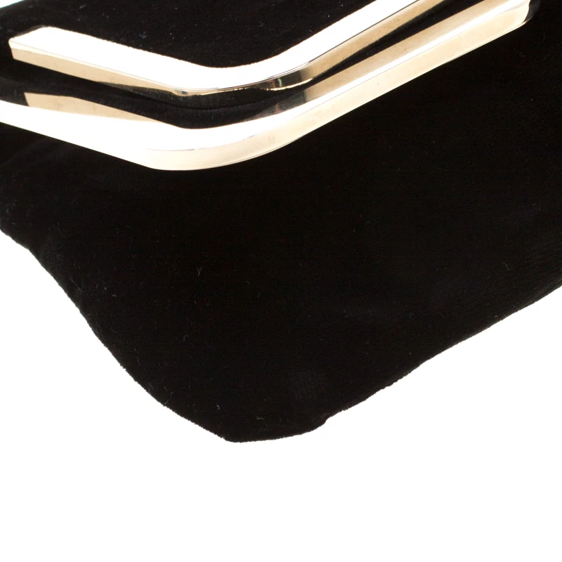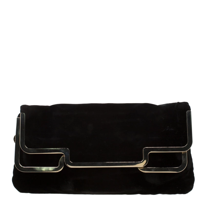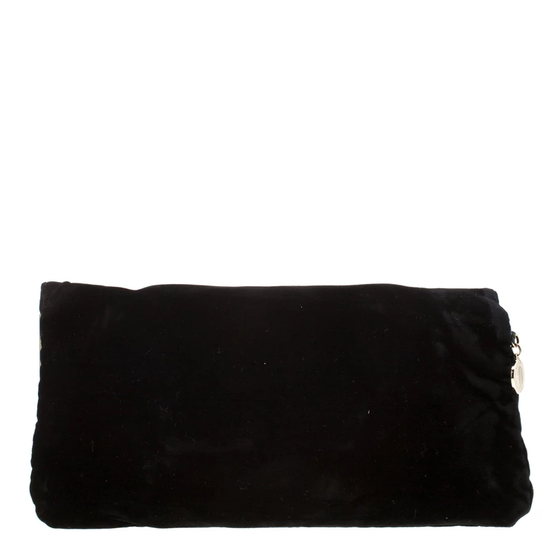 Keep it simple and classy as you carry your essentials in a gorgeous accessory that complements your dress perfectly. This Stella McCartney clutch features a luxurious velvet body with gold-tone metal detailing on the flap and a satin interior.