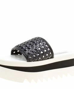 Wearing Stella McCartney just gives one a soothing feeling because of the fact that her designs are high-fashion and eco-friendly. From her very famous label, comes this pair of slides that are made from faux leather in a wicker style, and elevated on high platforms set in a modern way.