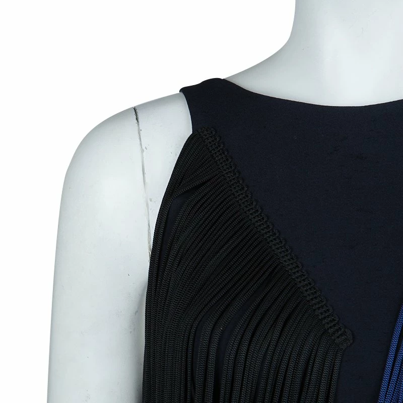 Show off your best features with this jaw-dropping and signature styling dress by Stella McCartney. Crafted from a blend of rayon, acetate, and elastane, this sleeveless dress has a round neck and features fringe drape detail that raises the glam quotient of this piece.