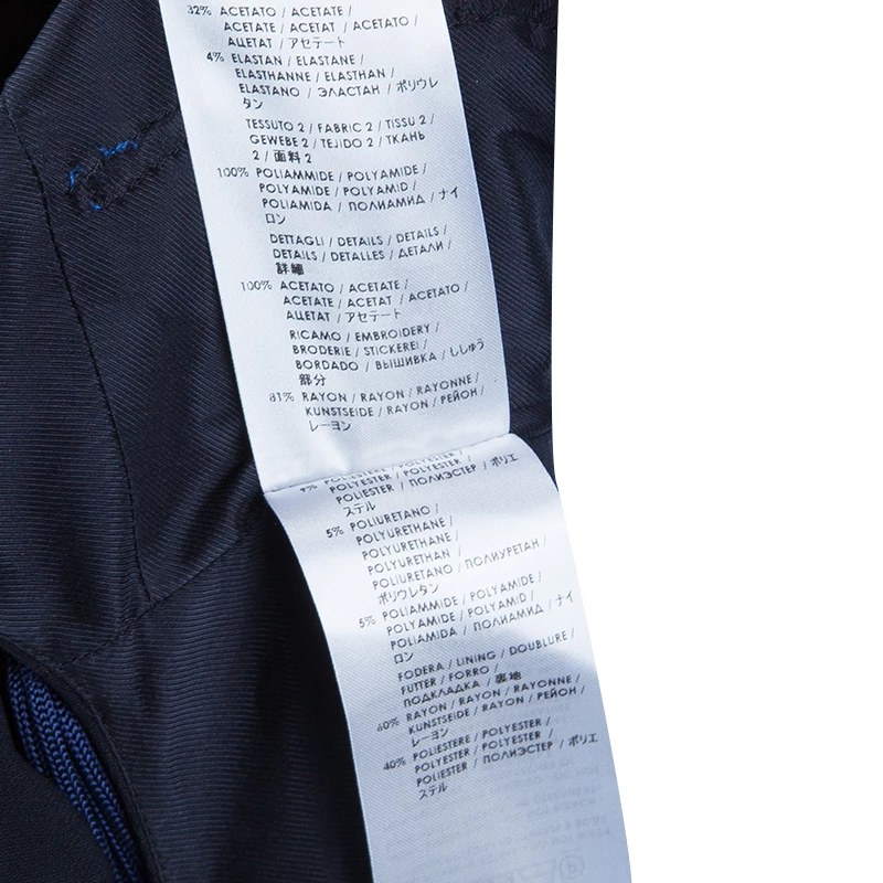- Fabric: Fabric A : 64% Rayon , 32% Acetate , 4% Elastane ; Fabric B : 100% Polyamide ; Details : 100% Acetate ; Embroidery : 81% Rayon , 5% Polyurethane , 5% Polyamide ( Lining : 60% Rayon , 40% Polyester )