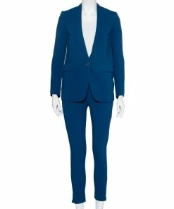 This Stella McCartney pantsuit is brilliantly tailored from blue-hued crepe. The suit features a button closure, slit pockets and sleek lapels. The trousers feature zip detailing near the hemline. Pair with a flattering top and high heels for a formal look.