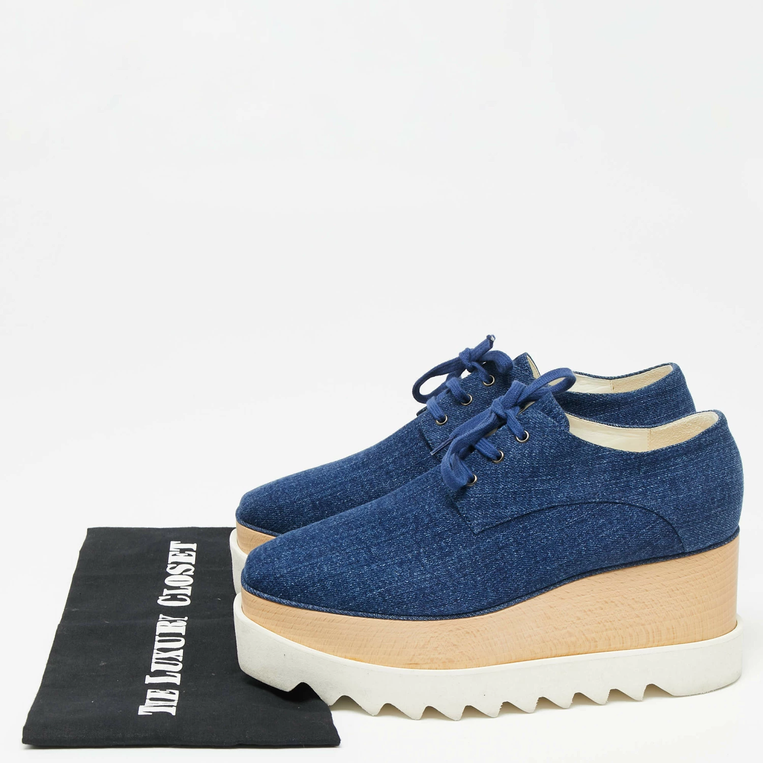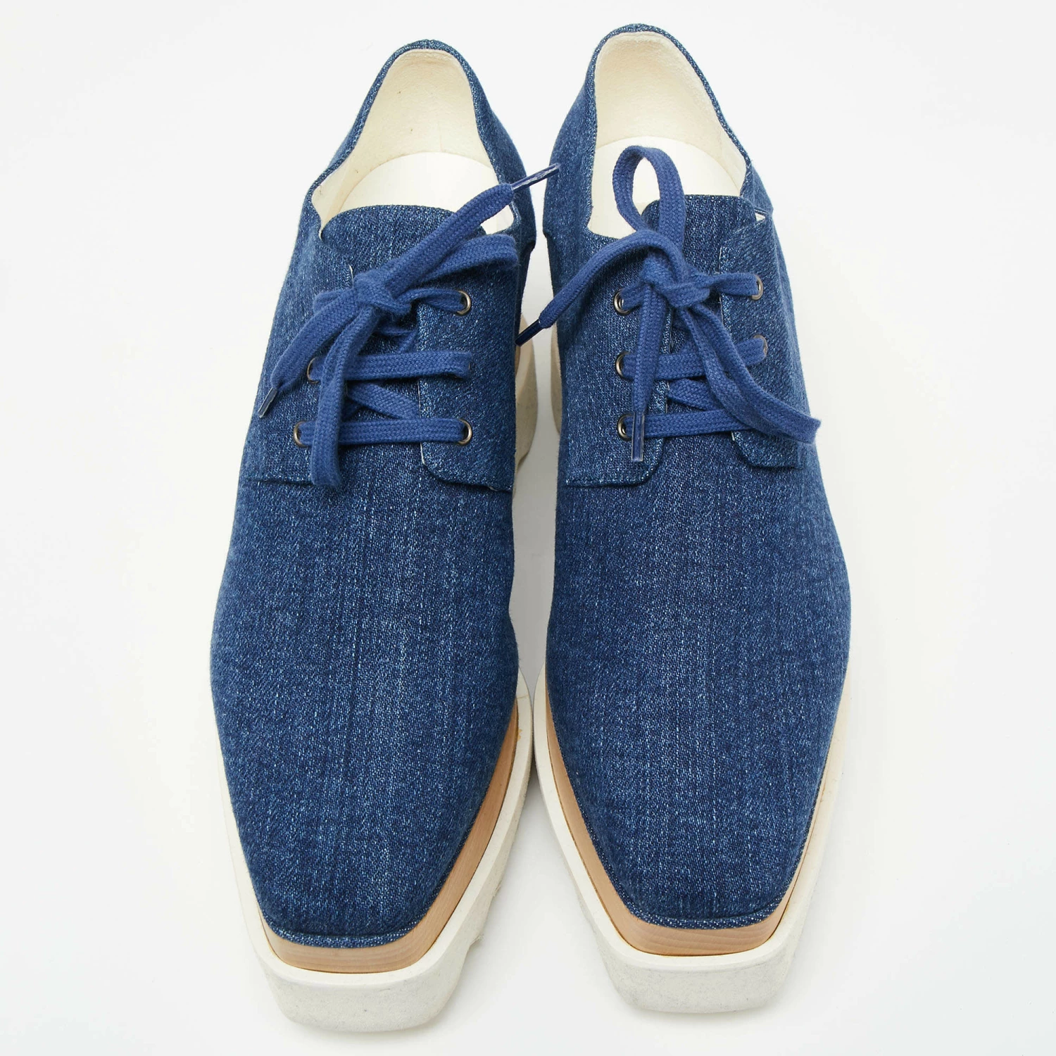 Stella McCartney exudes her high style and unique fashion taste with these Elyse shoes. They are brimming with exquisite details like the denim exterior, the laces, and the thick platforms. Grab this pair today and let it help you express your fabulous style.