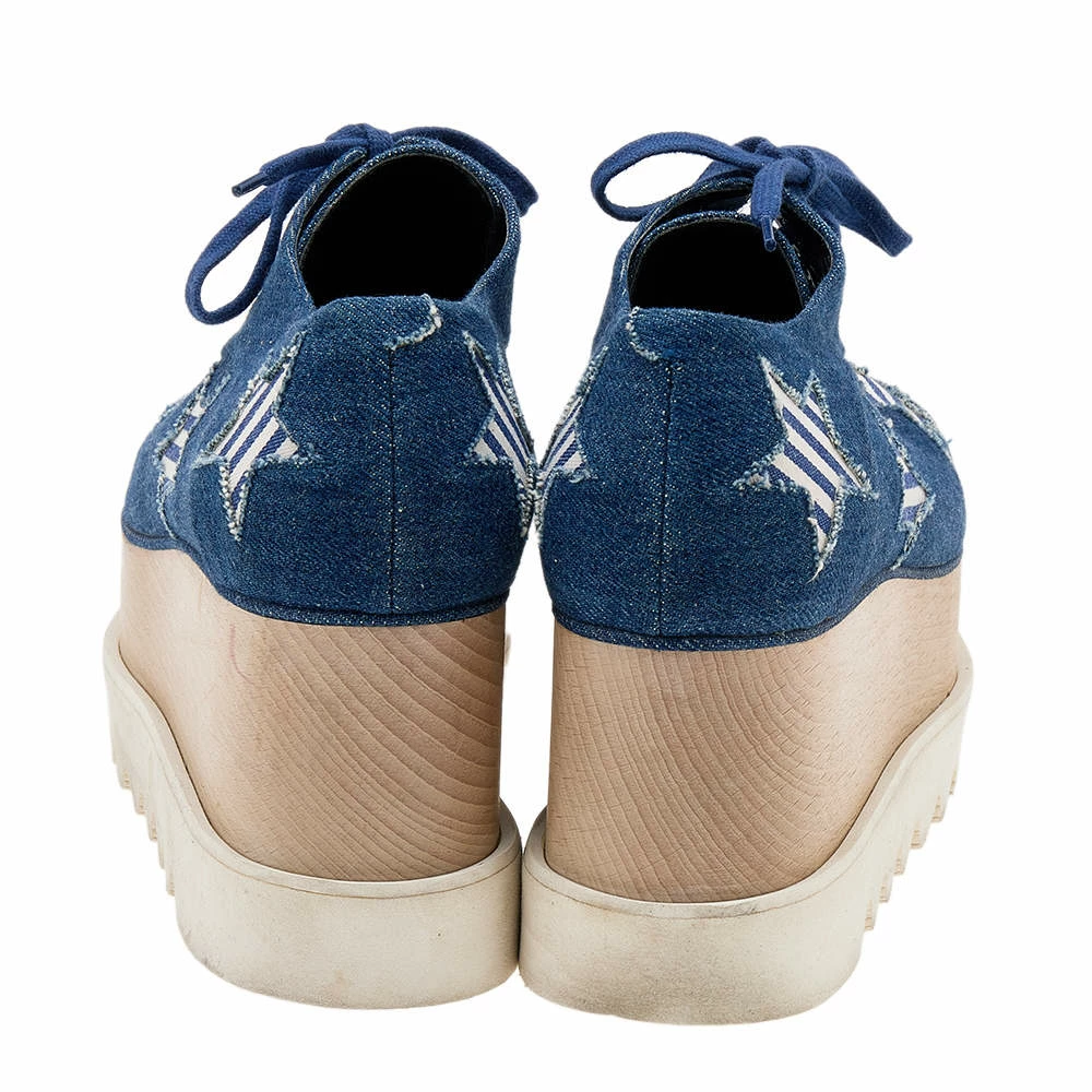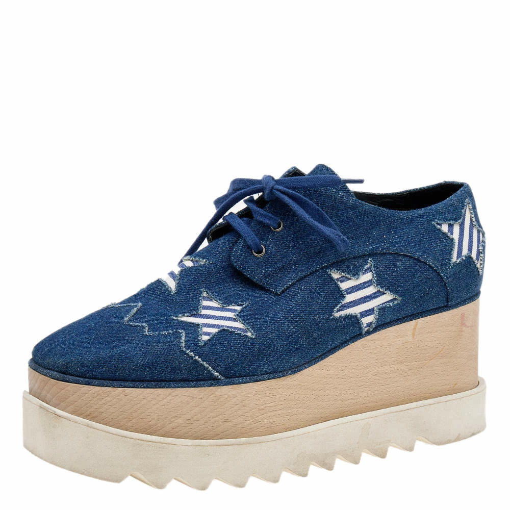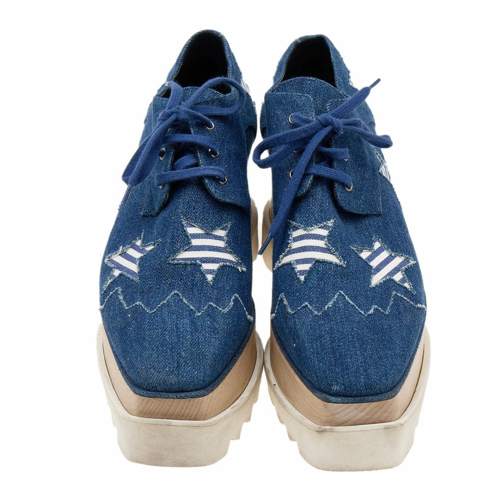 Stella McCartney exudes her high style and unique fashion taste with these Elyse shoes. They feature star details on the denim exterior, square-cut toes, simple laces. and layered platforms. Grab this pair today and let it help you express your fabulous style.