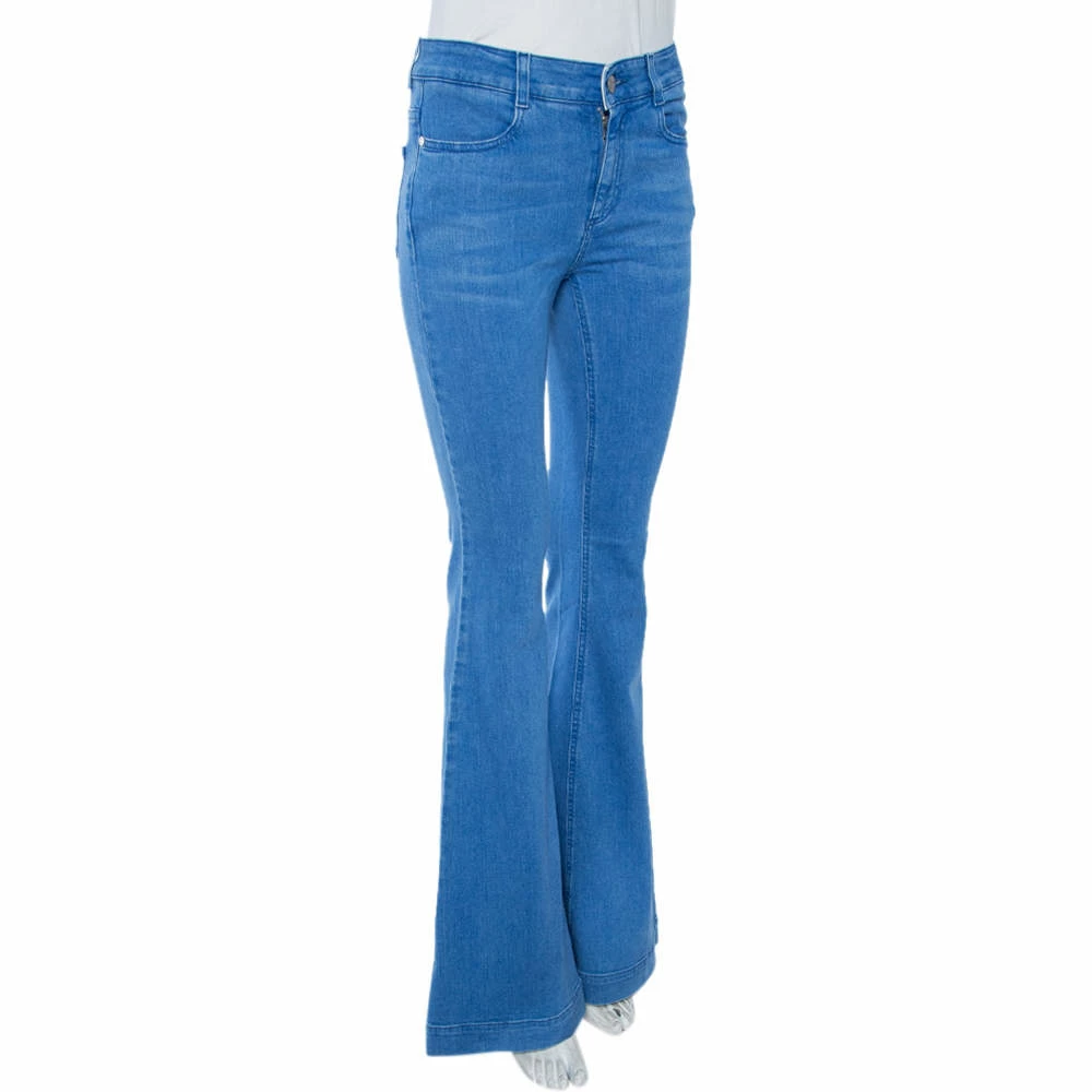These jeans by Stella McCartney are the perfect pair of trendy, designer bottoms to add to your wardrobe. They are comfortable and up to date with the latest trends in fashion, featuring a flared leg cut and a blue shade of denim.