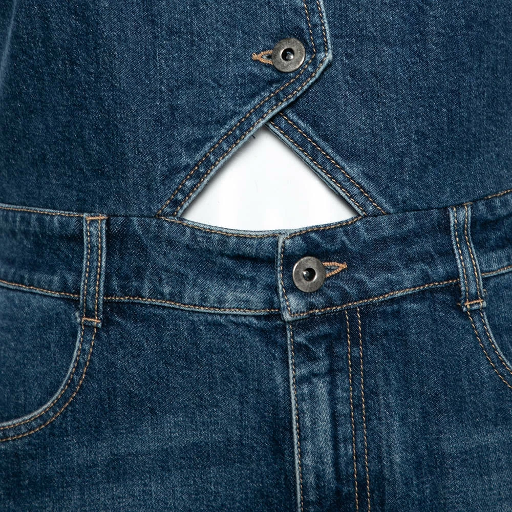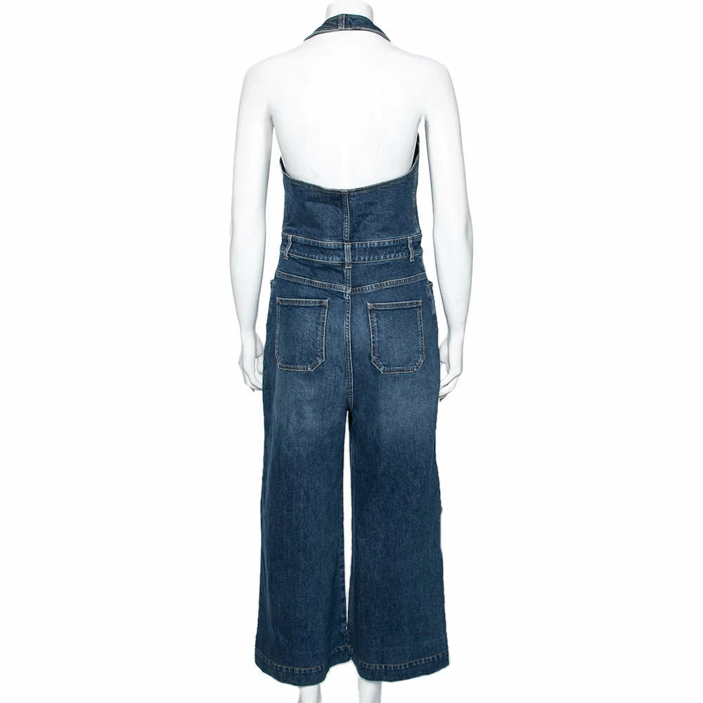Add luxury and class to your casual ensemble by wearing this stunning jumpsuit from the House of Stella McCartney. It is styled using blue denim fabric and exhibits a halterneck style. It showcases a cut-out detail on the front, buttoned closure, and four external pockets. Look trendy and chic as you don this Stella McCartney creation!