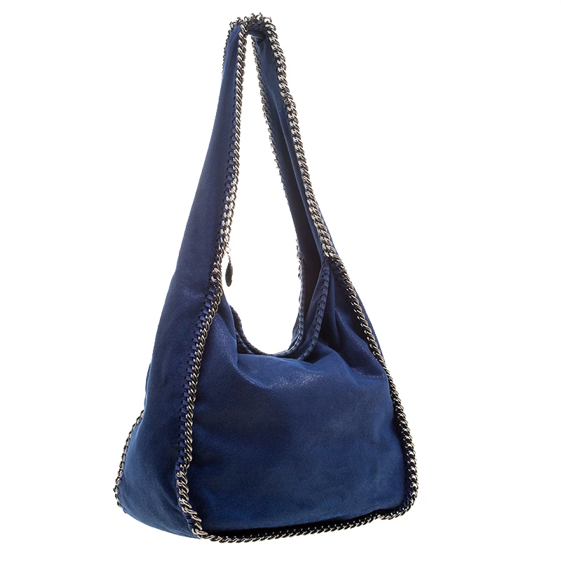 Stella McCartney is known for her chic designs and this Falabella hobo perfectly embodies this trait. Crafted in Italy from blue faux leather, it features a fabric interior and black tone chain details on its contours and handle. This bag can be carried with your everyday outfits.