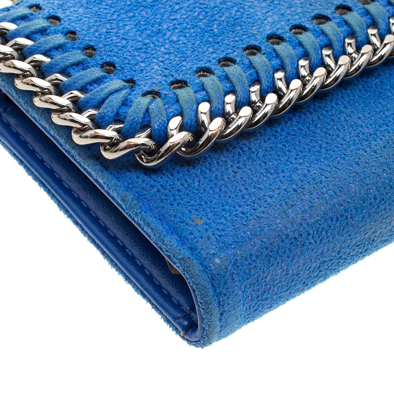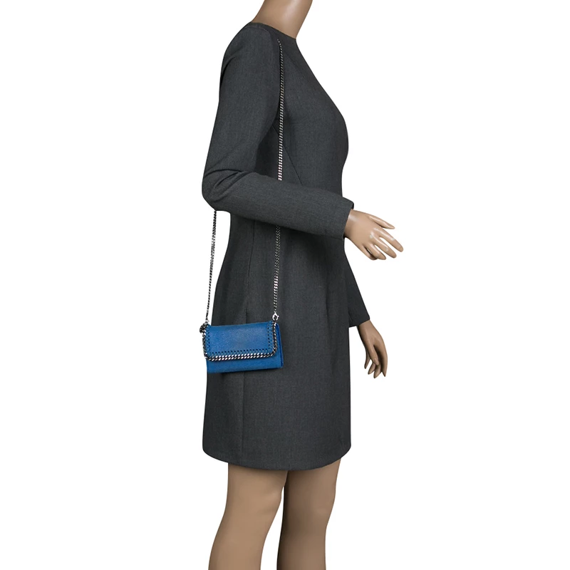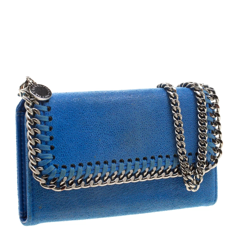 Designed to impress, this breathtaking wallet from Stella McCartney will help you carry your phone as well as cash and cards with ease and style. Made from faux suede and beautified with blue, this wallet has a case for your phone as well as multiple slots, and chains detailed on the flap and as the shoulder strap.