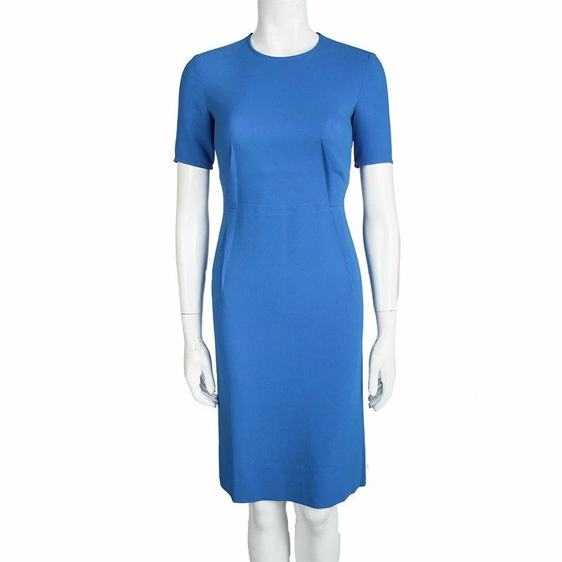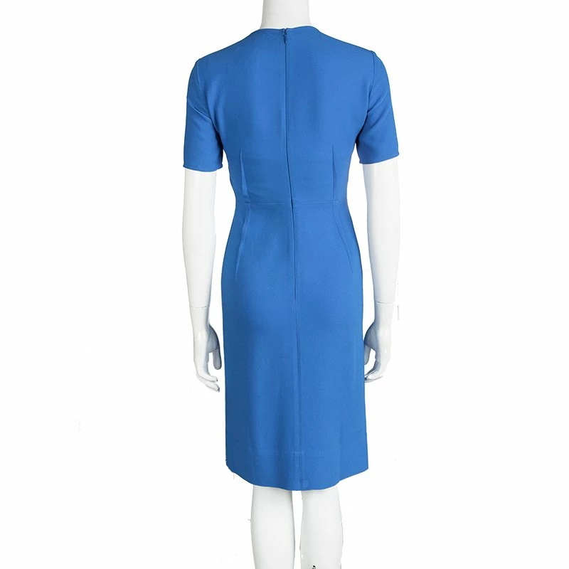 This Hungarian dress from Stella McCartney is sure to enchant and mesmerize you. In a beautiful blue shade, this dress is made of a viscose blend and features a well defined silhouette. It flaunts a round neckline, subtle pleates at the sides, short sleeves and a concealed zip closure at the back. It is perfect to make a bold statement and can be paired well metallic pumps and an embellished cocktail ring.