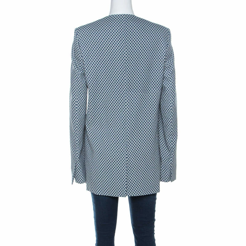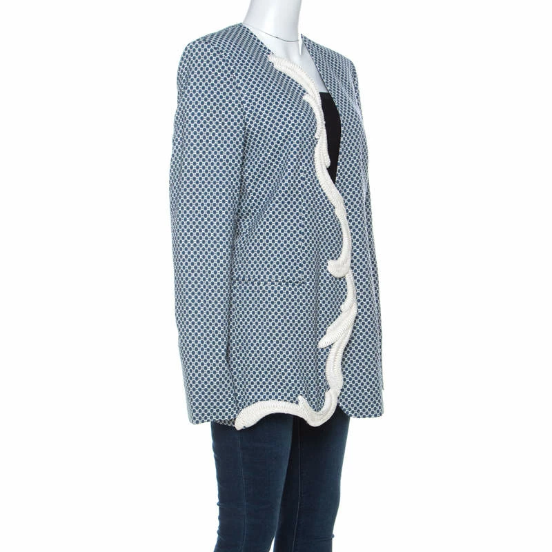 Stylish and very modern, this blazer from Stella McCartney will make others gasp in admiration. The fabulous blue blazer features a fabulous silhouette with heavy appliques on the right placket. It flaunts a blue and white print all over, long sleeves, and button fastening. You’ll look chic when you wear this blazer with corsets and thigh high boots.