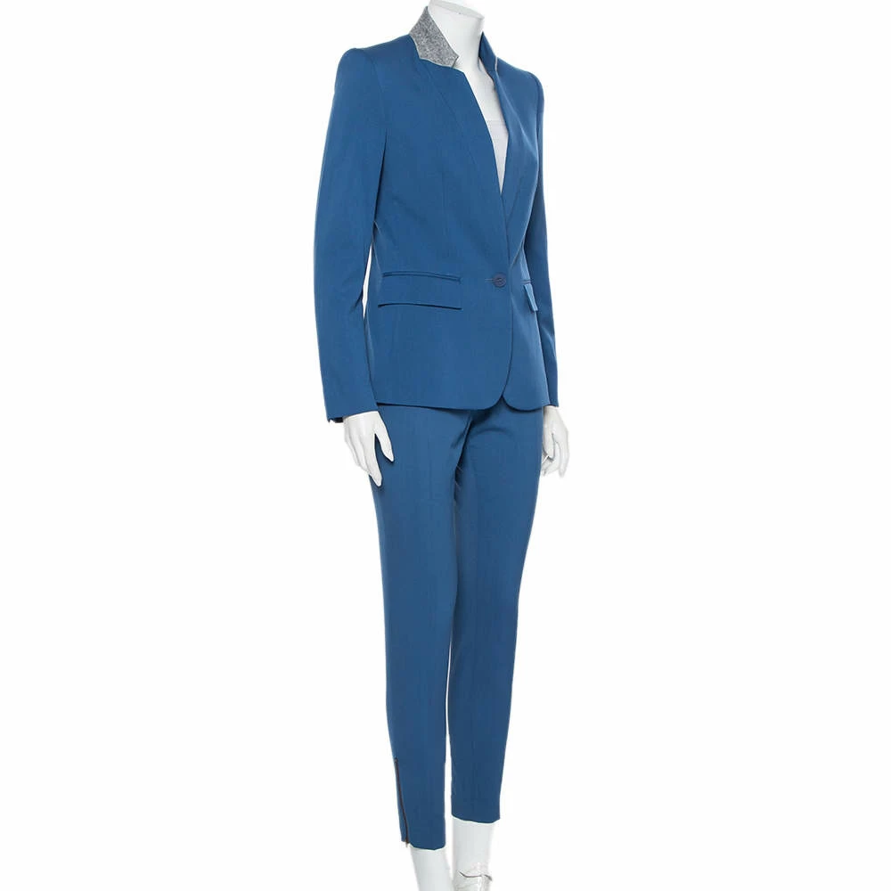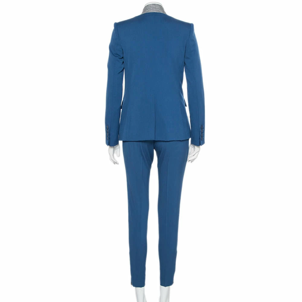 This Stella McCartney pantsuit is brilliantly tailored from blue-hued wool. The suit features a button closure, pockets and a contrasting collar. The tapered trousers feature two pockets. Pair with a flattering top and high heels for a formal look.