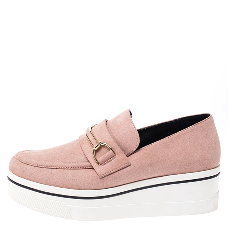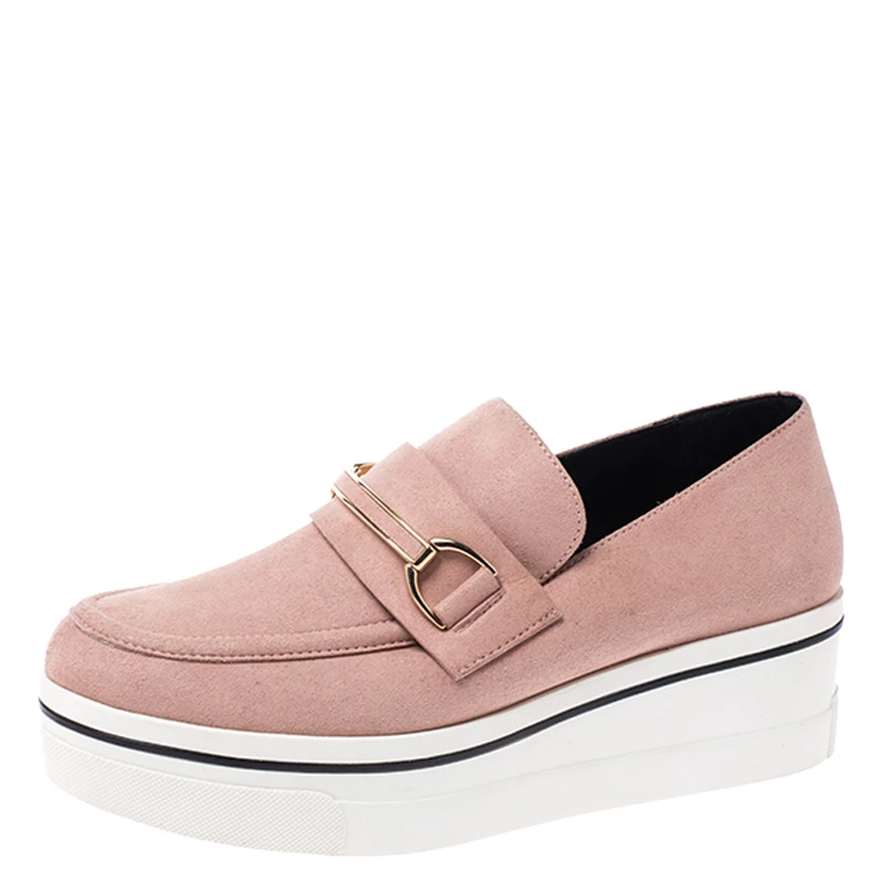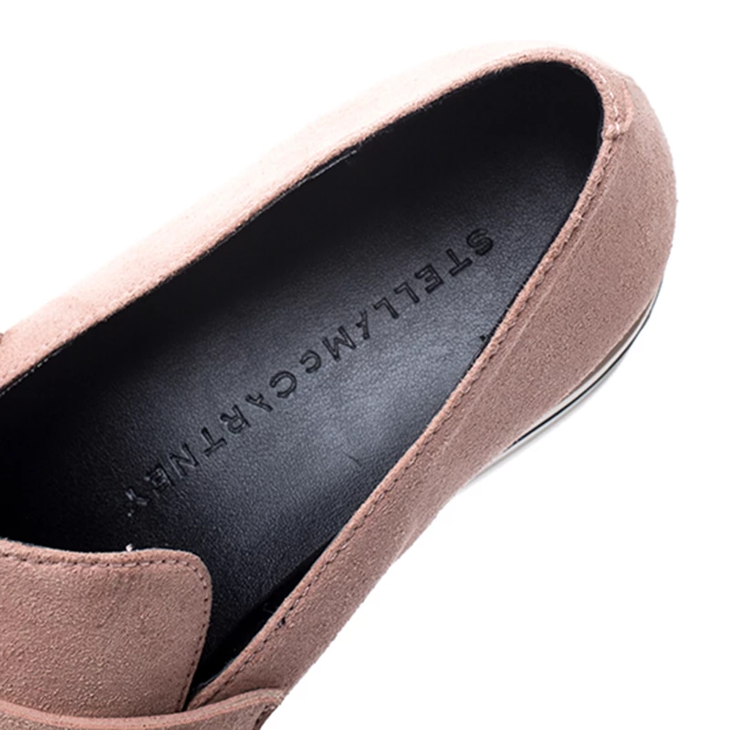 This season get these loafers from Stella McCartney for yourself and take your fashion quotient to new heights. Crafted from blush pink faux suede, they feature platforms, faux leather lining, rubber soles and gold-tone hardware. Let your fashion sense speak for itself when you wear this trendy pair.