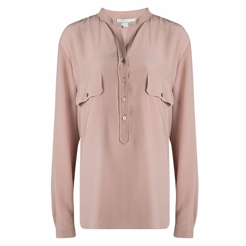 Started as the Creative Director of the House of Chloe, Stella McCartney soon opened her own fashion house in the year 2001. Stella McCartney’s shirt is crafted in a stunning blush pink silk and features a mandarin collar. It comes with two flap chest pockets and feature button detailing on the front, cuffs and pockets. The slightly loose silhouette of this makes a perfect wear for relaxed days when paired with fitted separates.