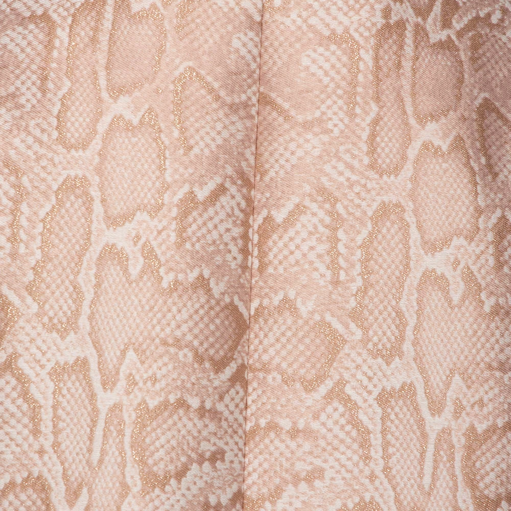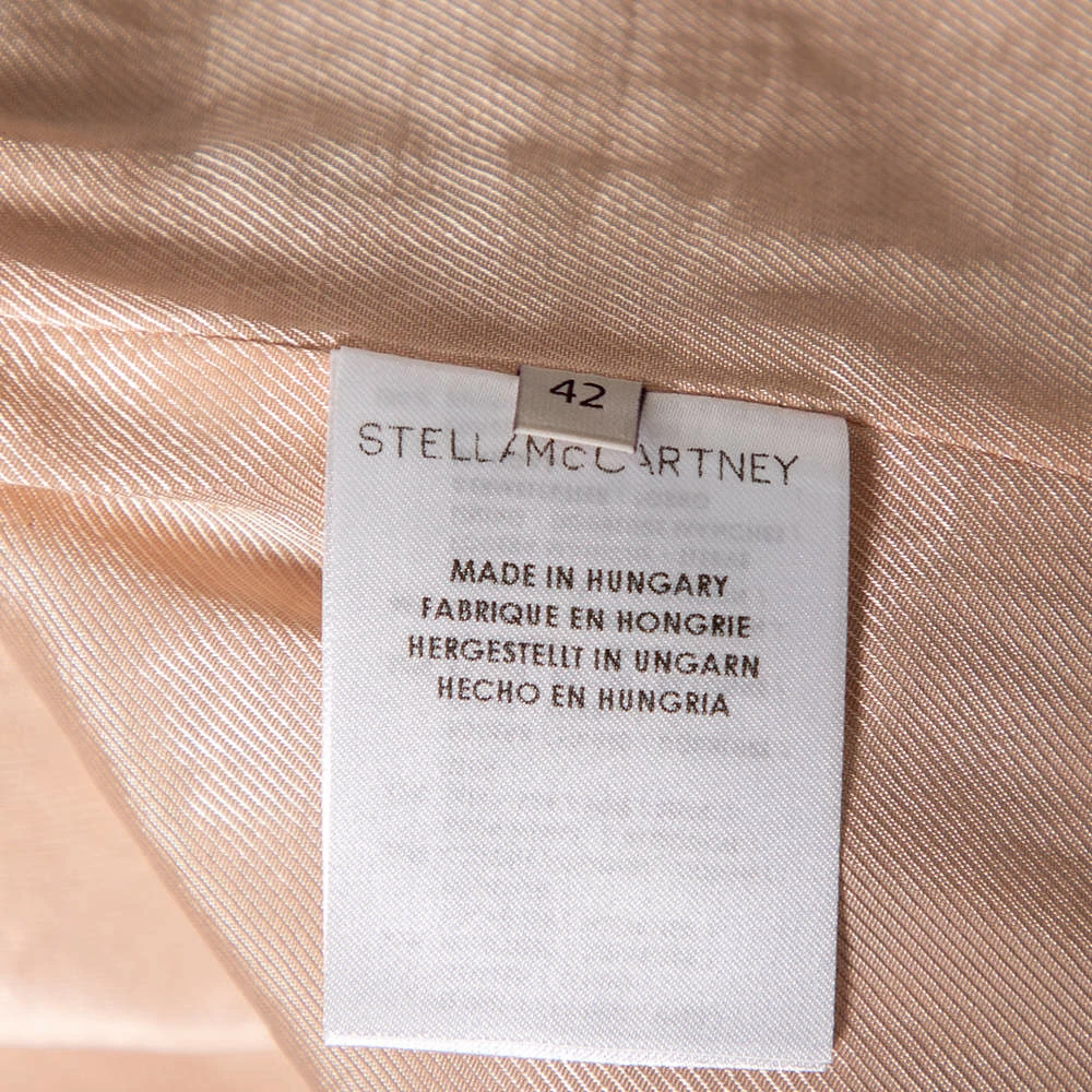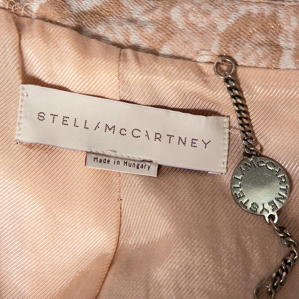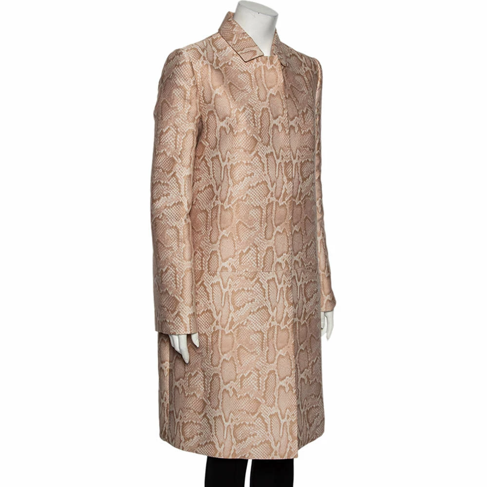 Every wardrobe deserves a good coat and what better than this blush pink creation by Stella McCartney! The coat is made of quality fabrics and features a snakeskin patterned jacquard, front buttons, twp pockets, and long sleeves. Very chic and stylish, it can be paired with a dress and pumps for an elegant statement.