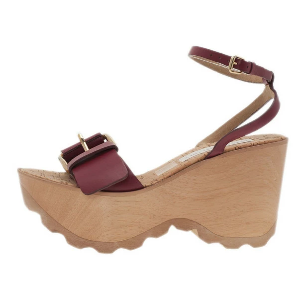 Platforms sandalsย are this season’s hottest trend and these Stella McCartney wedges are a great example. Made from faux leather, the shoes are accented with buckled faux leather straps. The gripped rubber sole and cork-lined soles give them a modern feel.Original Retail Price:ย USย $540