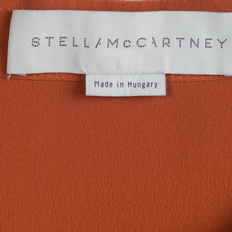 Stella McCartney is known for her impeccable tailoring and bold shapes in her creations. Cut from 100% silk, this blouse features a rich brick-orange hue with long sleeves. It comes with two buttoned chest pockets and a half-way buttoned front. Featuring a slightly loose fit this blouse looks best when styled with dark blue skinny jeans.