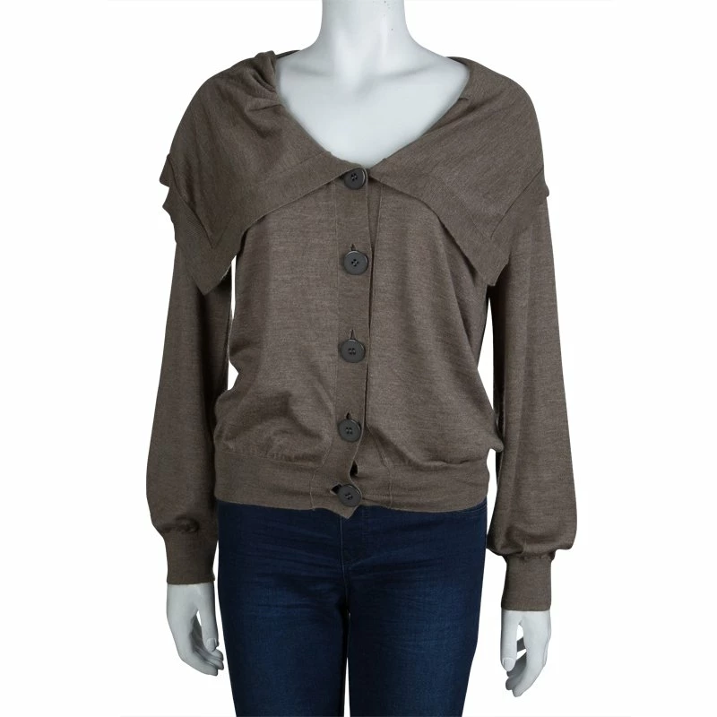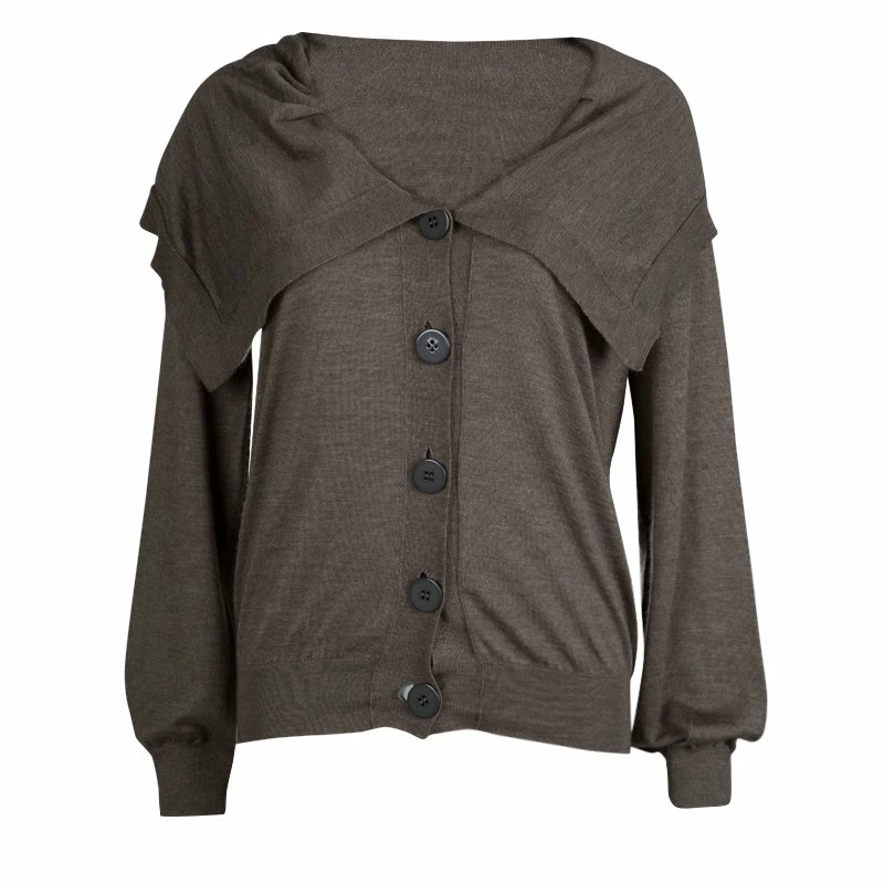 The Stella Mccartney cashmere cardigan comes with a draped neck. The cardigan is full-sleeved and is secured by fashionably oversized button closures. Rib knit hems and cuffs ensure a close fit and add to its design.