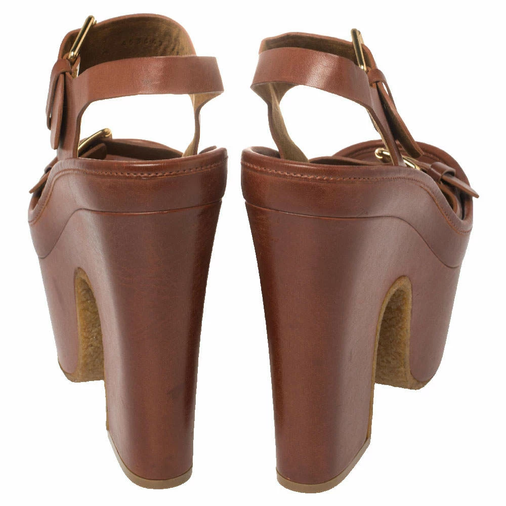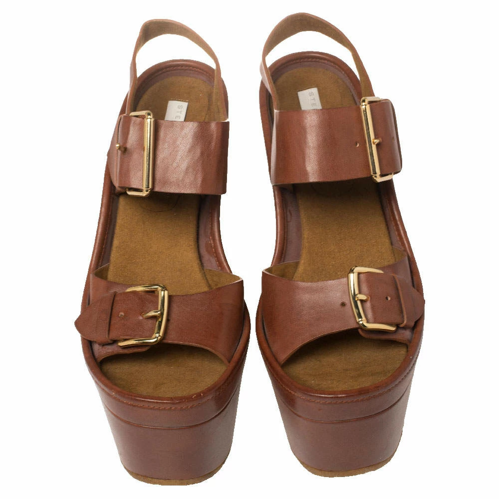You are sure to feel your stylish best every time you step out in these chunky sandals from Stella McCartney! Beautifully designed with faux leather, they successfully present a gorgeous appeal. The brown pair carries open toes, buckled straps, platforms, and block heels.