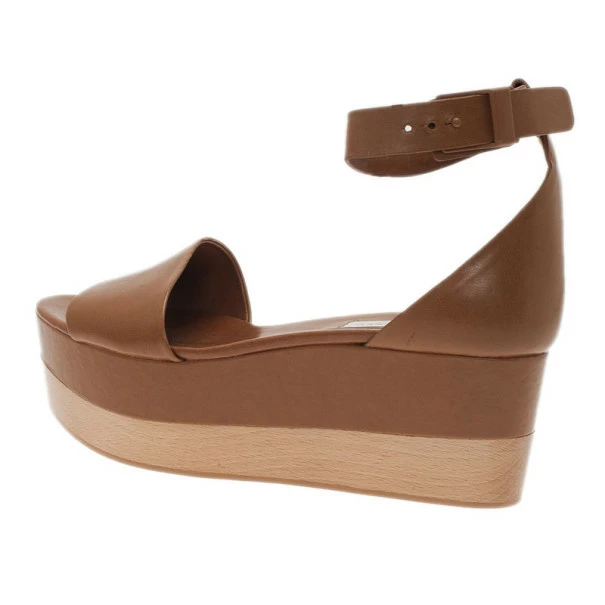 These casual Lindsay wedges are part of the 2014 collection. Made from brown faux leather, the pair has an ankle strap with a side buckle fastening, 3.5 cm wedge heel and a platform sole.