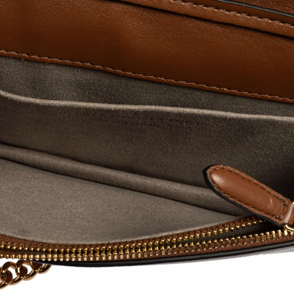 Make a wonderful appearance by adorning this plush bag by Stella McCartney. Crafted from faux leather, it comes in a lovely shade of brown. It features a quilted star pattern and the brand’s logo makes an appearance on a star-shaped emblem on the front flap. The Alcantara-lined interior is sized to house your essentials. The bag is complete with a gold-tone chain-link strap.