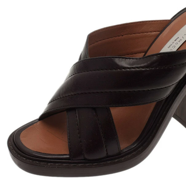 Go for a fresh and girly look while wearing these Stella McCartney sandals. Made from brown faux leather, their feature straps criss-cross vamps. Lined with faux leather, their insoles are coupled with 11cm marbled veneer block curved heels.