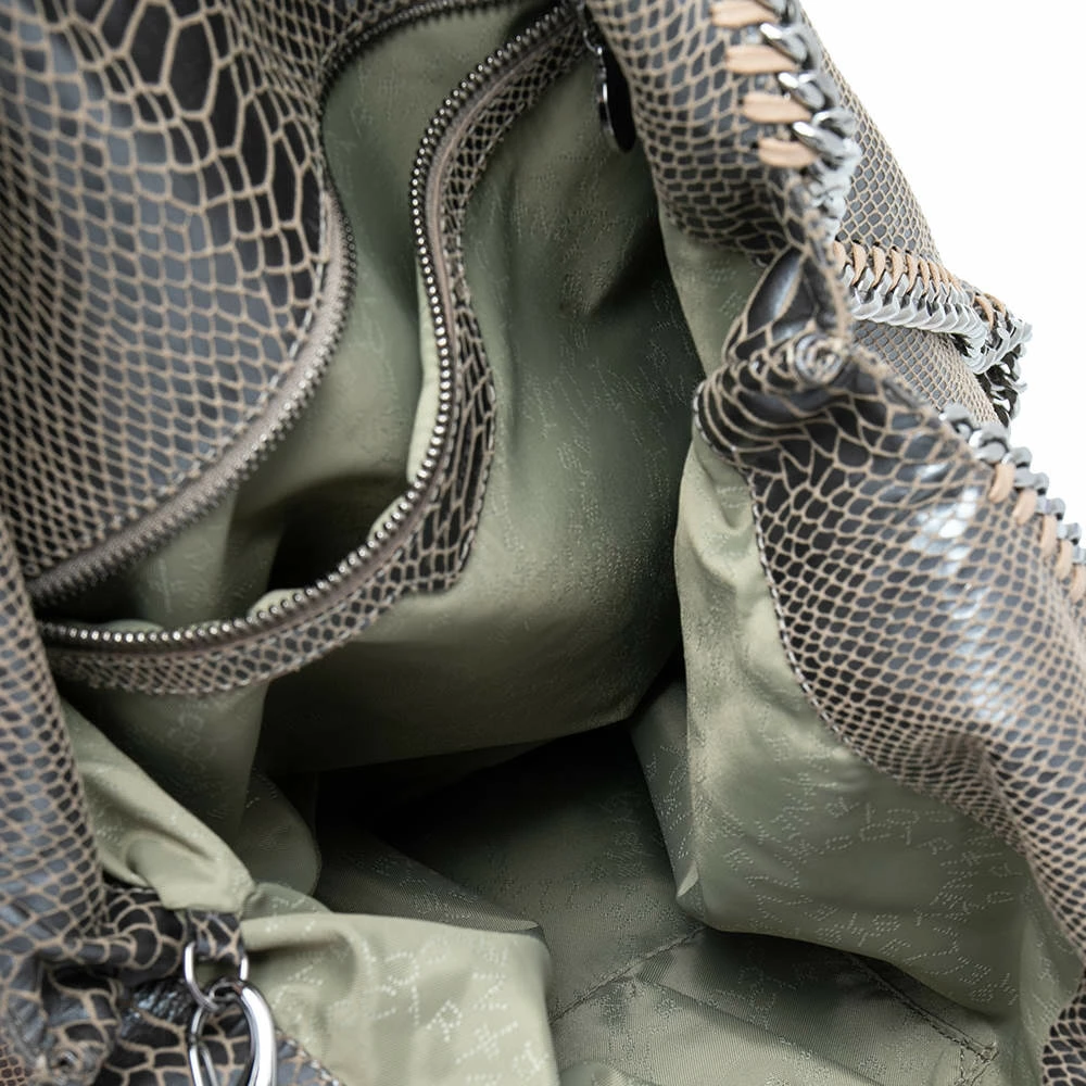 This Falabella tote from Stella McCartney will make the dream of countless women come true. Crafted from faux python-embossed leather, it is durable and stylish. While the chain detailing elevate its beauty, the fabric-lined interior will dutifully hold all your daily essentials. You are sure to make hearts skip when you swing this tote using the chain handles.