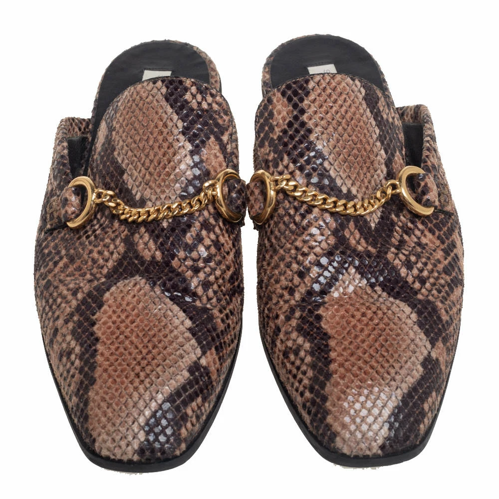 To perfectly accompany your attires, Stella McCartney brings you this pair of flats that speak nothing but beauty. They’ve been crafted from faux python leather and decorated with gold-tone chain trim detailing on the vamps. The comfortable flats are easy to slip on and they are just the right choice to complement your fashionable side.