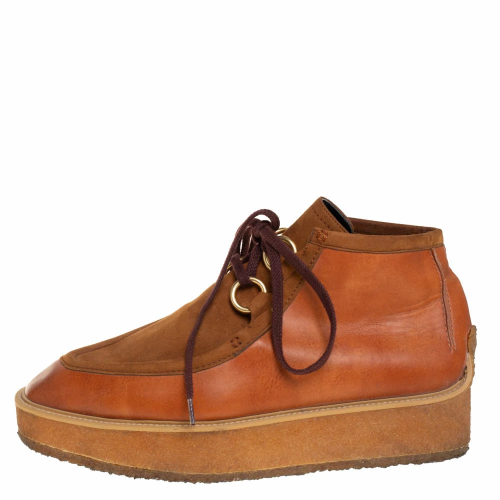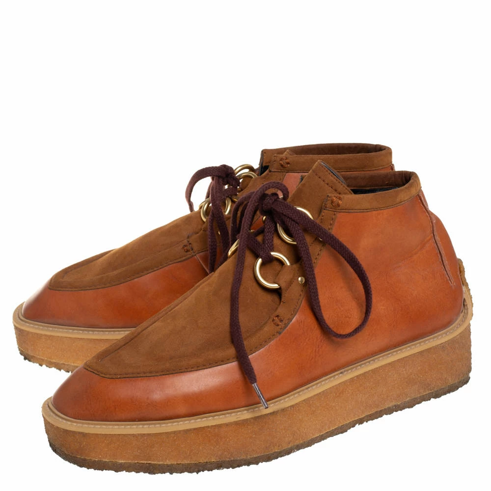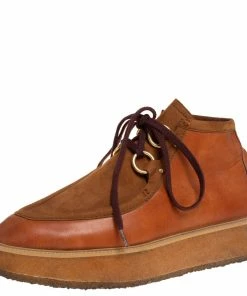 Fashioned to take your style a notch higher, these high-top sneakers from Stella McCartney are absolutely worth the splurge! They’ve been crafted from faux suede and faux leather and styled with lace-ups on the vamps and platforms. Comfortable insoles and durable rubber soles complete the brown pair.
