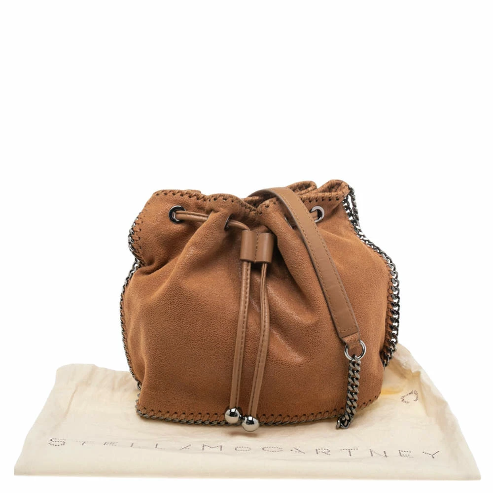 The iconic Falabella bag from Stella McCartney is presented in a bucket silhouette. Crafted from faux suede, it is durable and stylish. While the chain detailing elevate its beauty, the fabric-lined interior will dutifully hold all your daily essentials. You are sure to make hearts skip when you swing this bag using the chain-link shoulder strap.