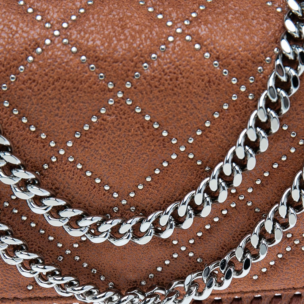 This Falabella bag from Stella McCartney will make the dream of countless women come true. Crafted from faux suede, it is durable and stylish. While the chain detailing and stud embellishments elevate its beauty, the fabric-lined interior will dutifully hold all your daily essentials. You are sure to make hearts skip when you swing it using the chain strap.