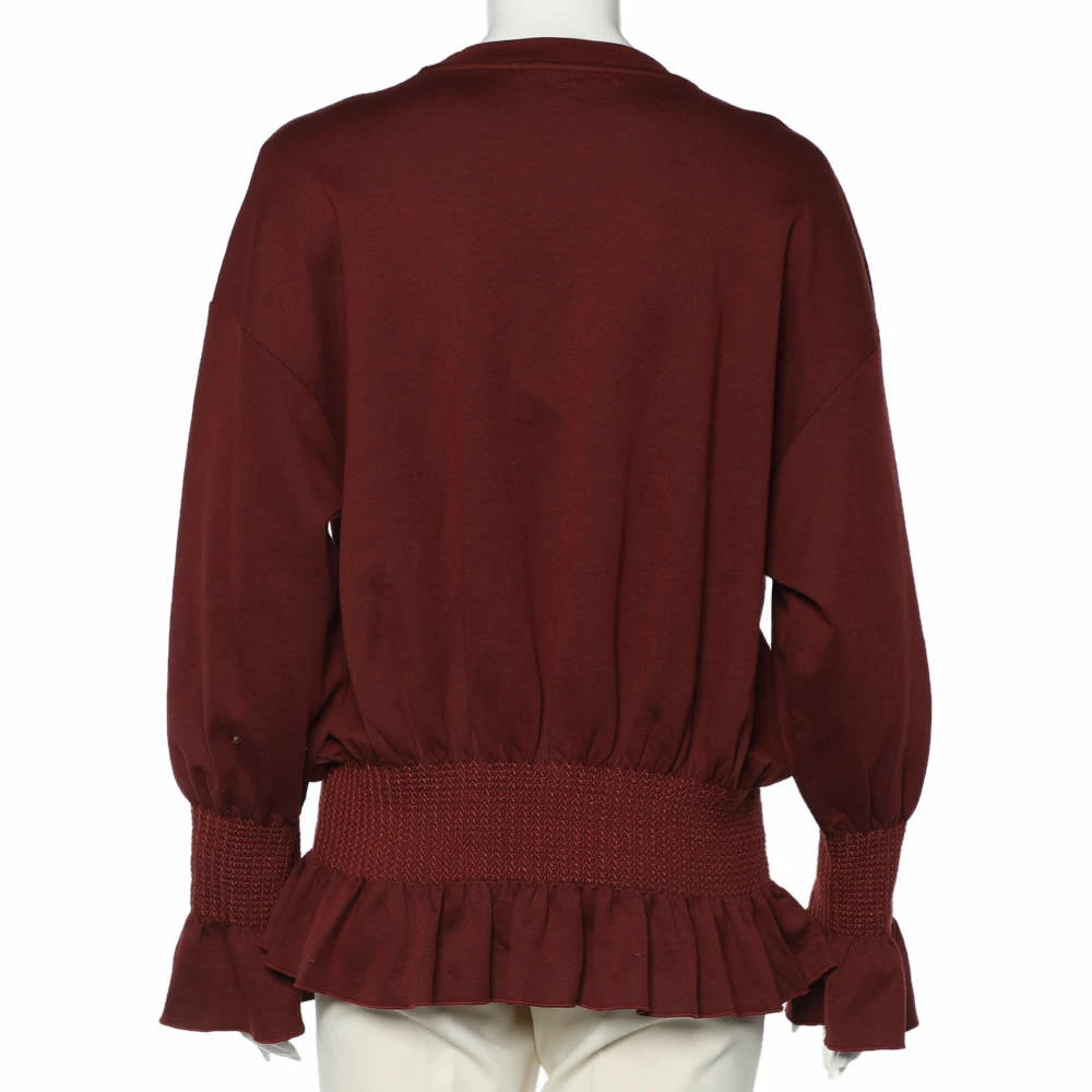 This burgundy sweatshirt by Stella McCartney skillfully merges elegant tailoring with a casual, loose silhouette. The cotton knit piece has a comfortable fit and a smocked design that will look great with both pants and skirts.