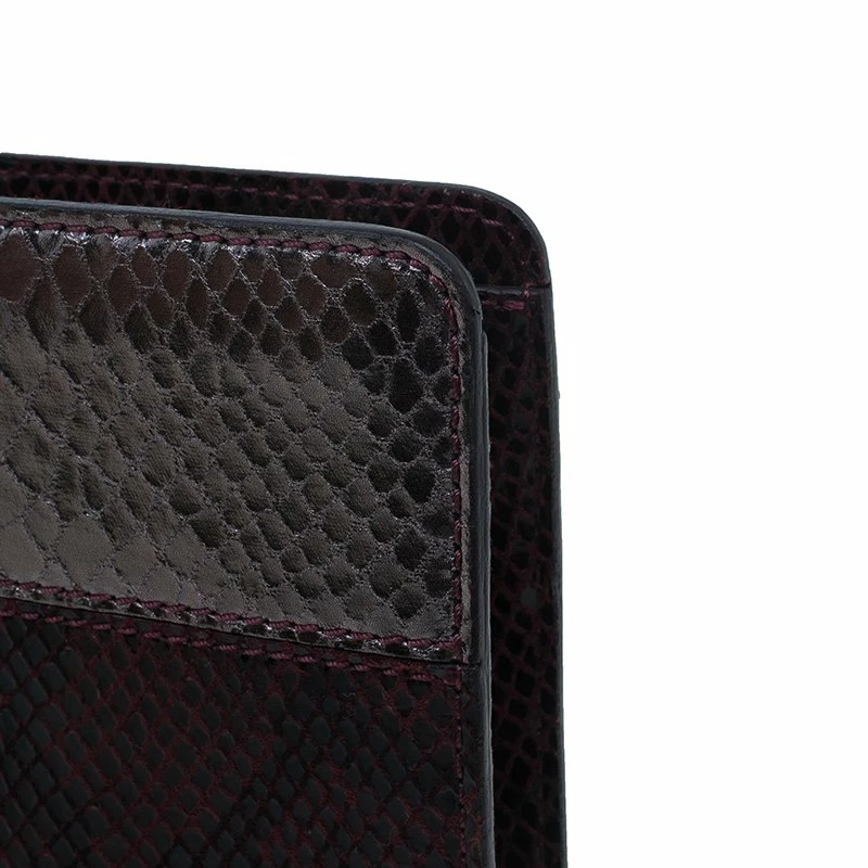 This Stella McCartney Burgundy Embossed Patchwork Clutch will bring out your wild side. Its faux leather exterior is patched with python and crocodile leather, creating an interesting look. It is coupled with a wrist-let and includes gold-tone hardware stud with perforated brand detailing. Lined with monogrammed fabric, the interior houses one zipped and two open compartments and showcases a magnetic closures.