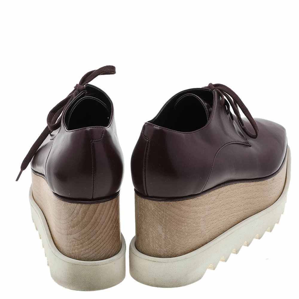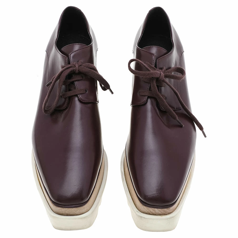 Stella McCartney proves her high style and unique fashion taste with these Elyse derby shoes. They are brimming with exquisite details like the lush burgundy faux leather exterior, the matching laces, and the thick serrated platforms. Grab this pair today and let it help you express your fabulous style.