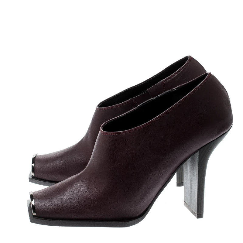 Chic, stylish and very modern, these Stella Mccartney ankle boots are perfect for the fashionable you! The burgundy boots are crafted from faux leather and feature square toes with gunmetal hardware detailing. They come equipped with comfortable insoles and 11 cm heels. Pair them with cuffed denims for your fashionable outings.