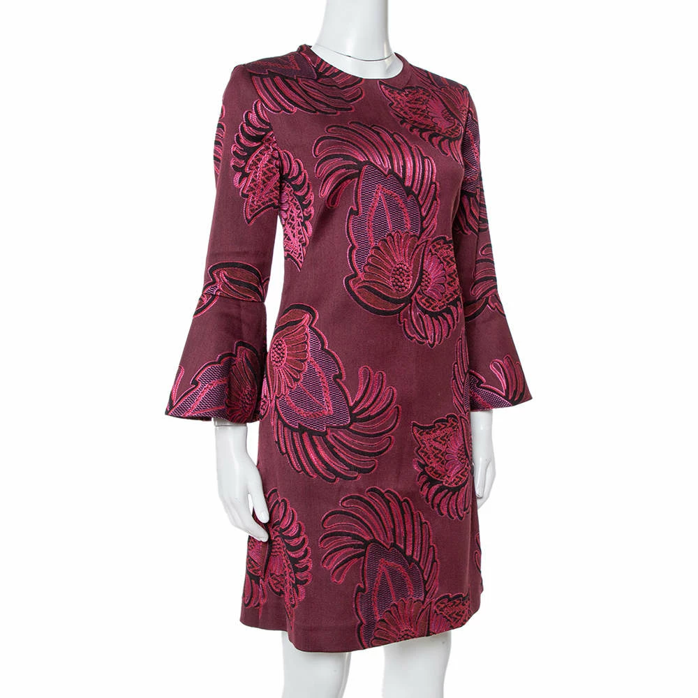 A fabulous dress like this one from Stella McCartney deserves to have a place in every fashionista’s closet. Luxuriously made from a wool blend and artfully detailed with floral jacquard, this burgundy dress has long sleeves and a hem ending above the knees. It’ll look amazing with pointed-toe pumps.