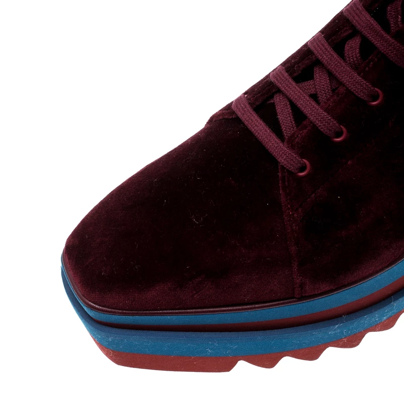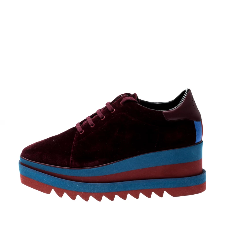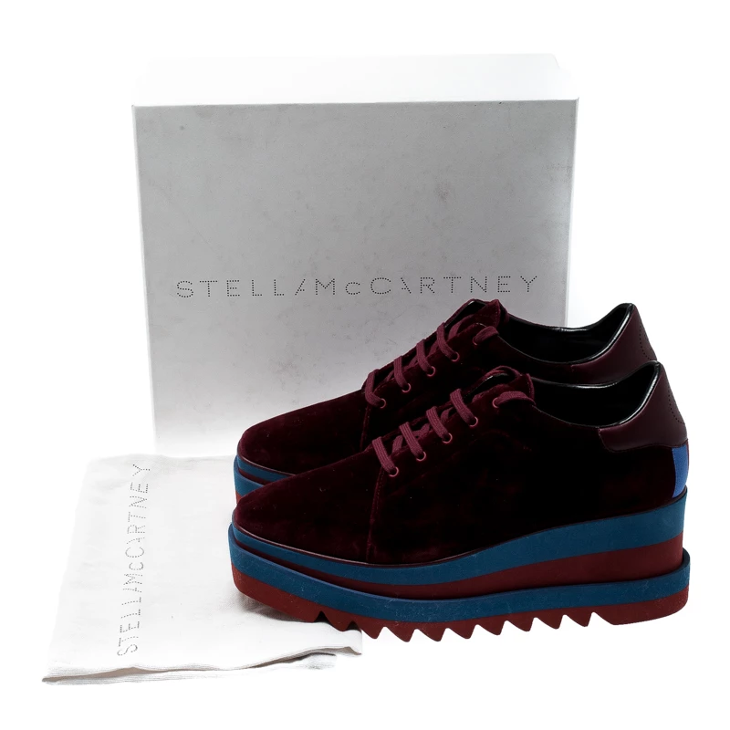 Stella McCartney proves her high style and unique fashion taste with these Elyse sneakers. They are crafted from velvet and elevated on high platforms. Grab this pair today and let it help you express your fabulous style.