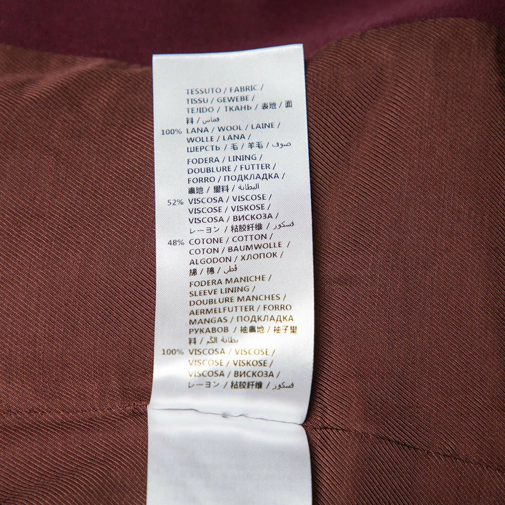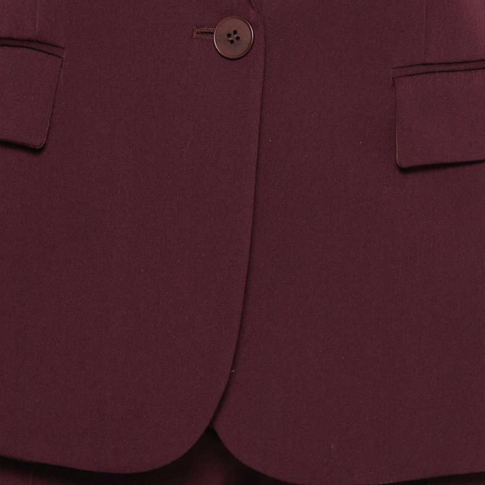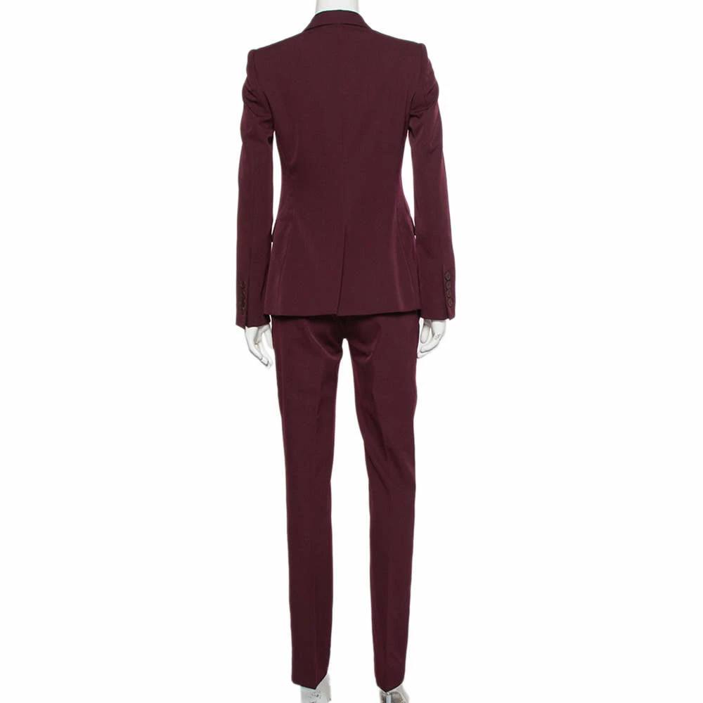This Stella McCartney pantsuit is brilliantly tailored from burgundy-hued wool. The suit features a button closure, pockets and sleek lapels. The trousers feature four pockets. Pair with a flattering top and high heels for a formal look.
