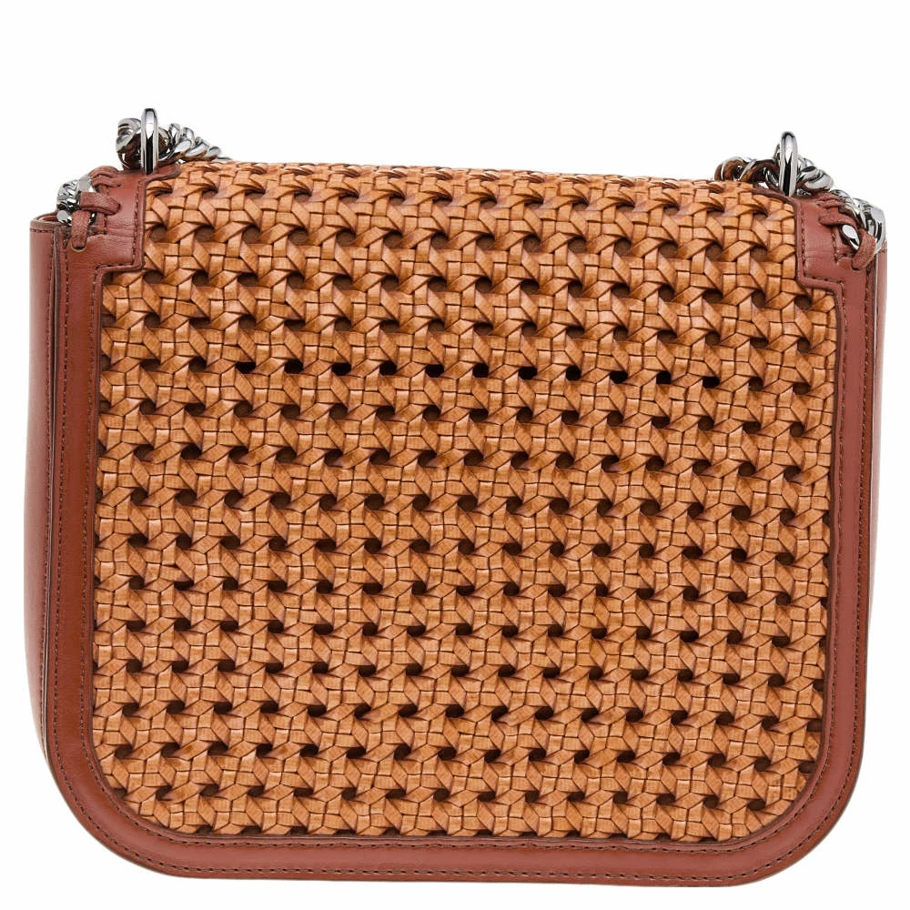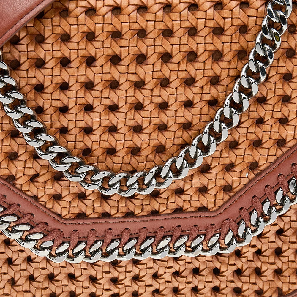 A refreshing version of Stella McCartney’s iconic Falabella bags, this box shoulder bag is chic and elegant. Featuring a diamond-cut front flap detailed with chain-link trims, the woven faux leather bag has a blend of unique details and signature designs.