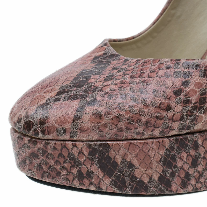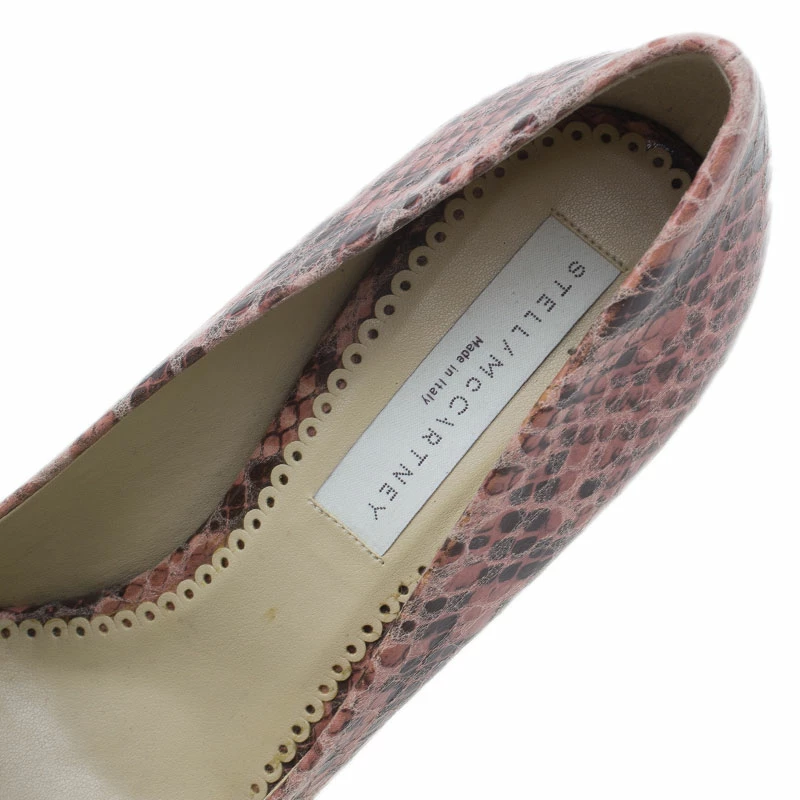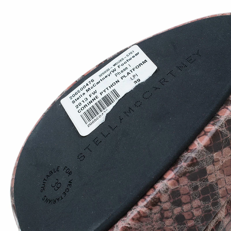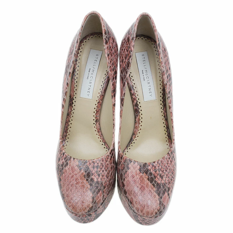Stay on top of the snakeskin trend with this pair of Stella McCartney pumps. Crafted from Faux python leather, they feature wide self-covered 13.5 cm heels and platforms. This pair is padded and lined with beige leather. Strut in these heels while holding their matching Stella McCartney clutch for a complete look!